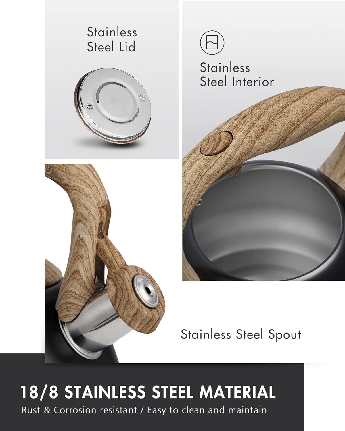 - Anti-Rust Finish - Stylish tea kettle electroplated for longevity. Professional food grade finish and stainless steel craftsmanship, ensures this kettle is rust & corrosion resistant.