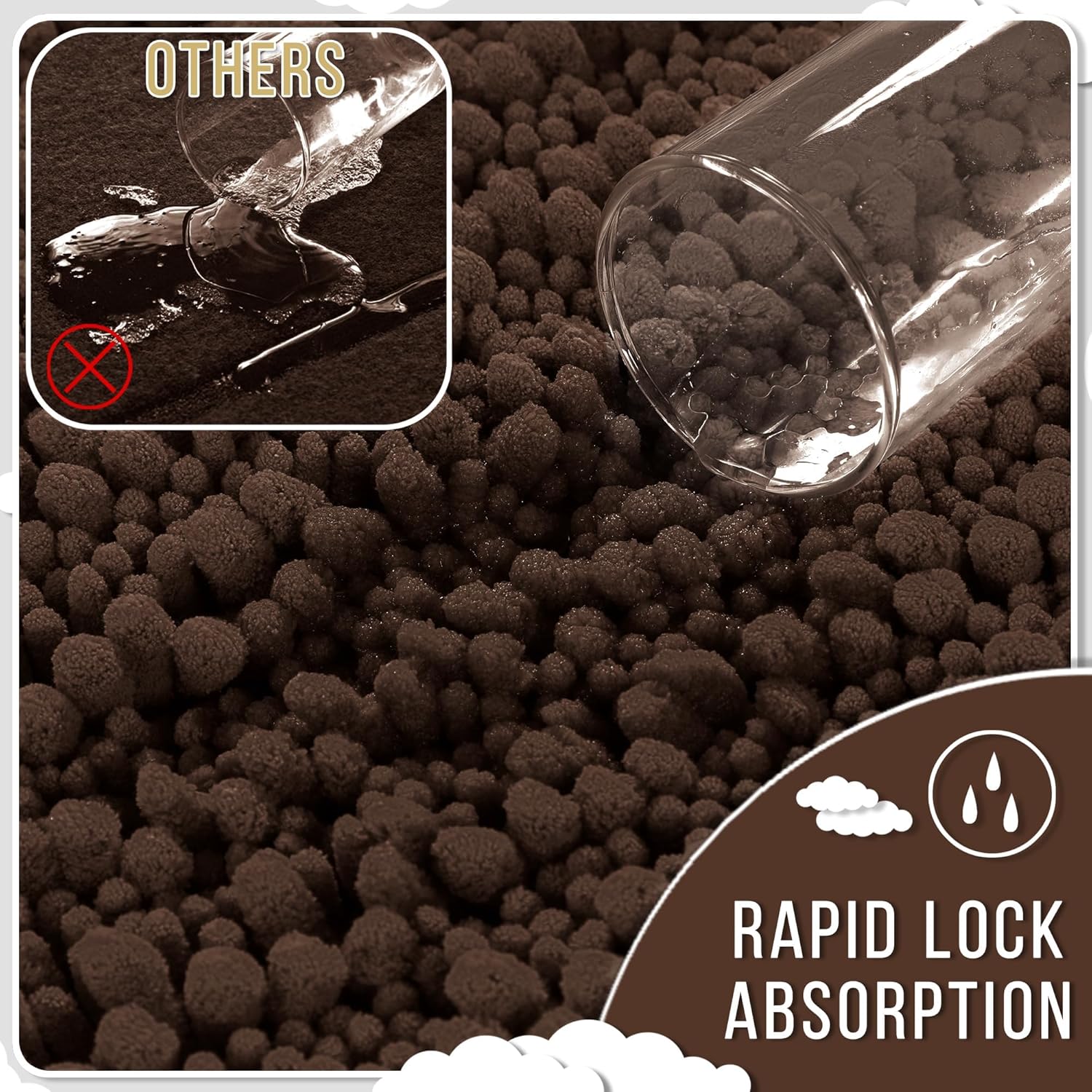 Yimobra Long Bathroom Rugs Non Slip Washable 44x24 Inch - Ultra Soft Absorbent Chenille Bath Mat, Quick Dry Shaggy Floor Carpet for Tub Shower, Brown Home Decor Accessories