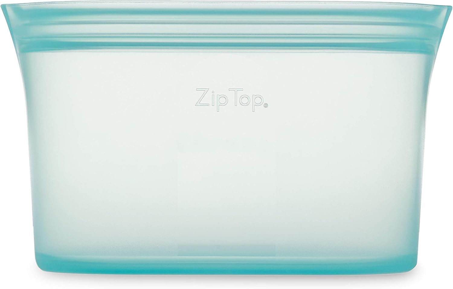 Zip Top Reusable Food Storage Bags | Large Dish [Teal] | Silicone Meal Prep Container | Microwave, Dishwasher and Freezer Safe | Made in the USA