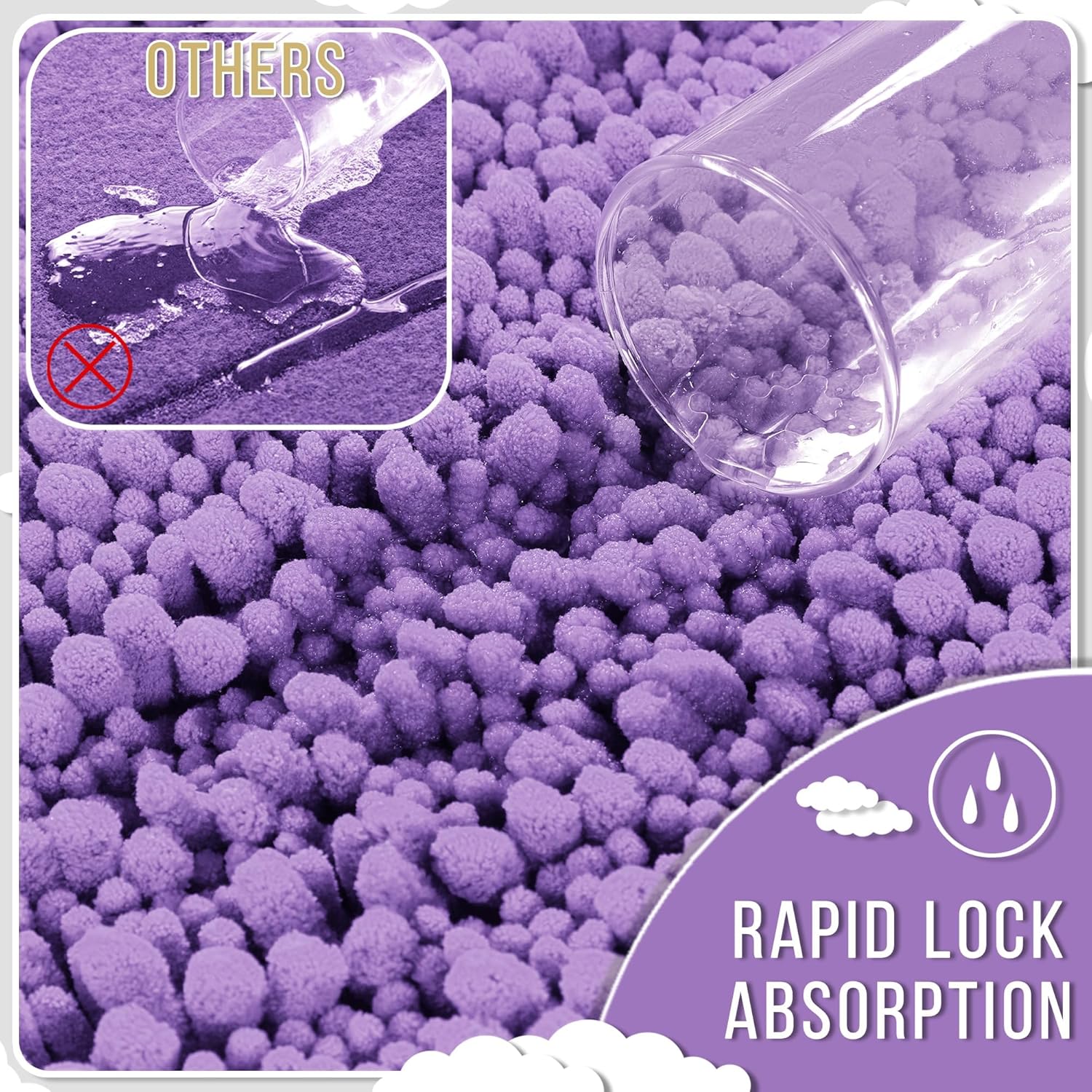 - Massive Water Absorption in Seconds: 5X faster than other materials mats, Yimobra bath mat absorbs 1000ml of water in 3 seconds. The vertical fiber channels lock moisture away from the surface, keeping your bathroom floor dry and discouraging damp environments. Perfect as a shower exit guard or sink splash catcher