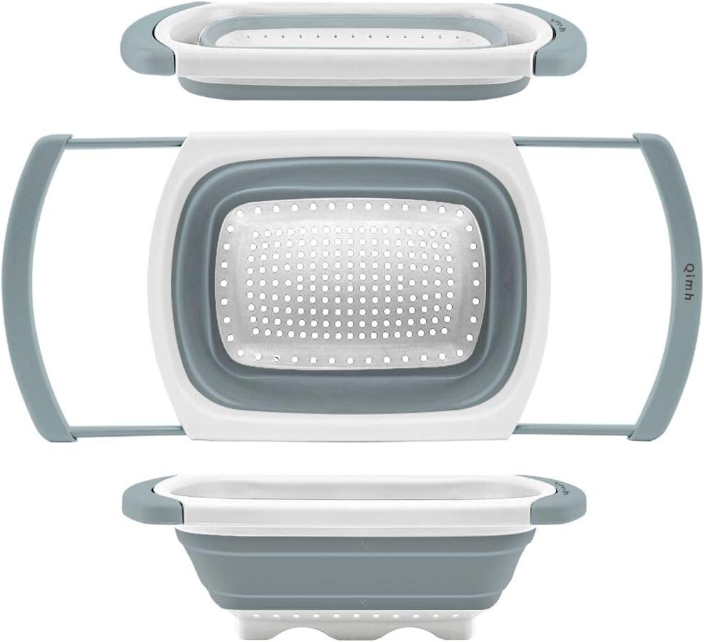 Qimh Collapsible Colander | Over The Sink Silicone Kitchen Strainers and Colanders with Extendable Handles | Veggies, Fruit and Pasta Foldable Strainer for Kitchen, 6-Quart, BPA Free