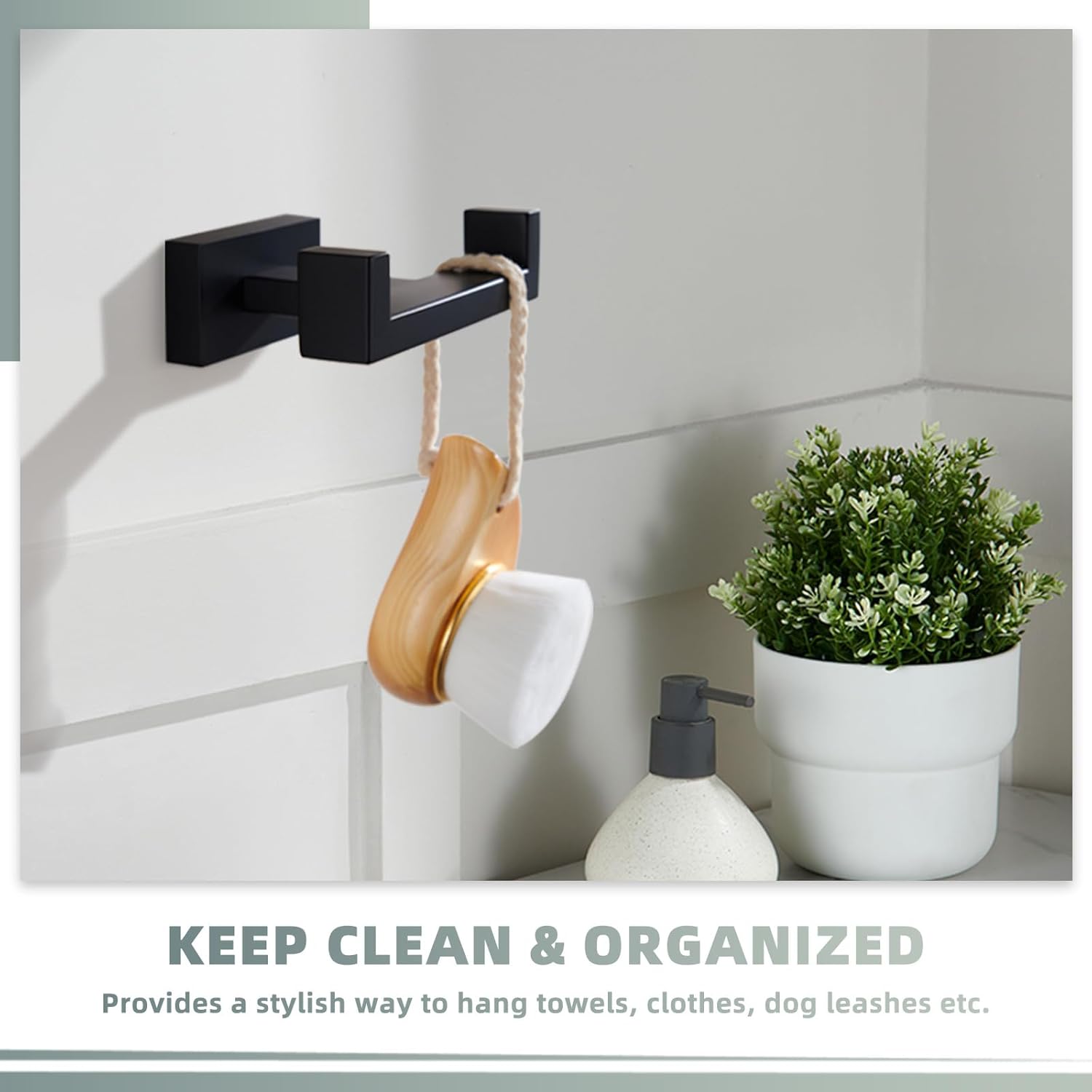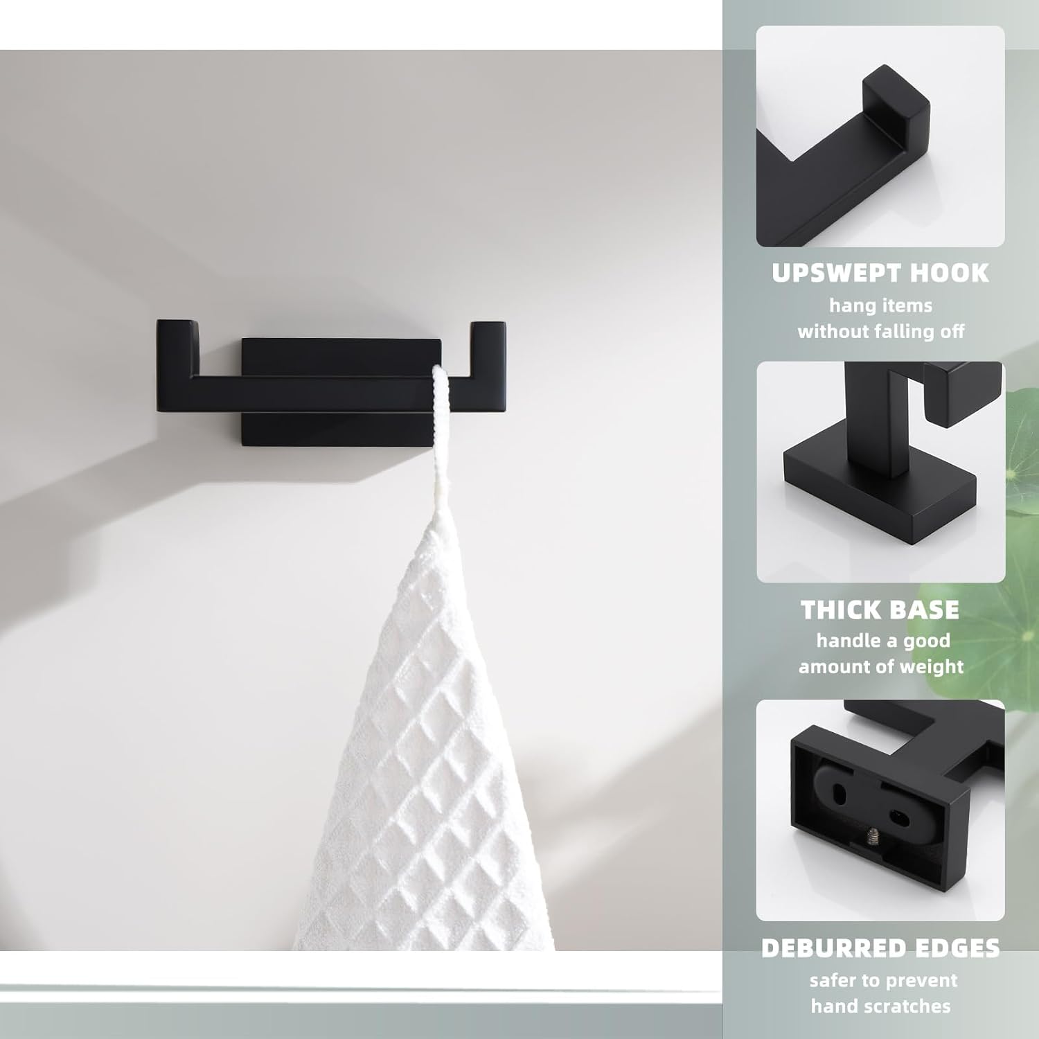 - CONVENIENT WIDE HOOK: wide square hook makes hang up towels easier compared to the rounded one, handles a good amount of weight without accidentally falling off