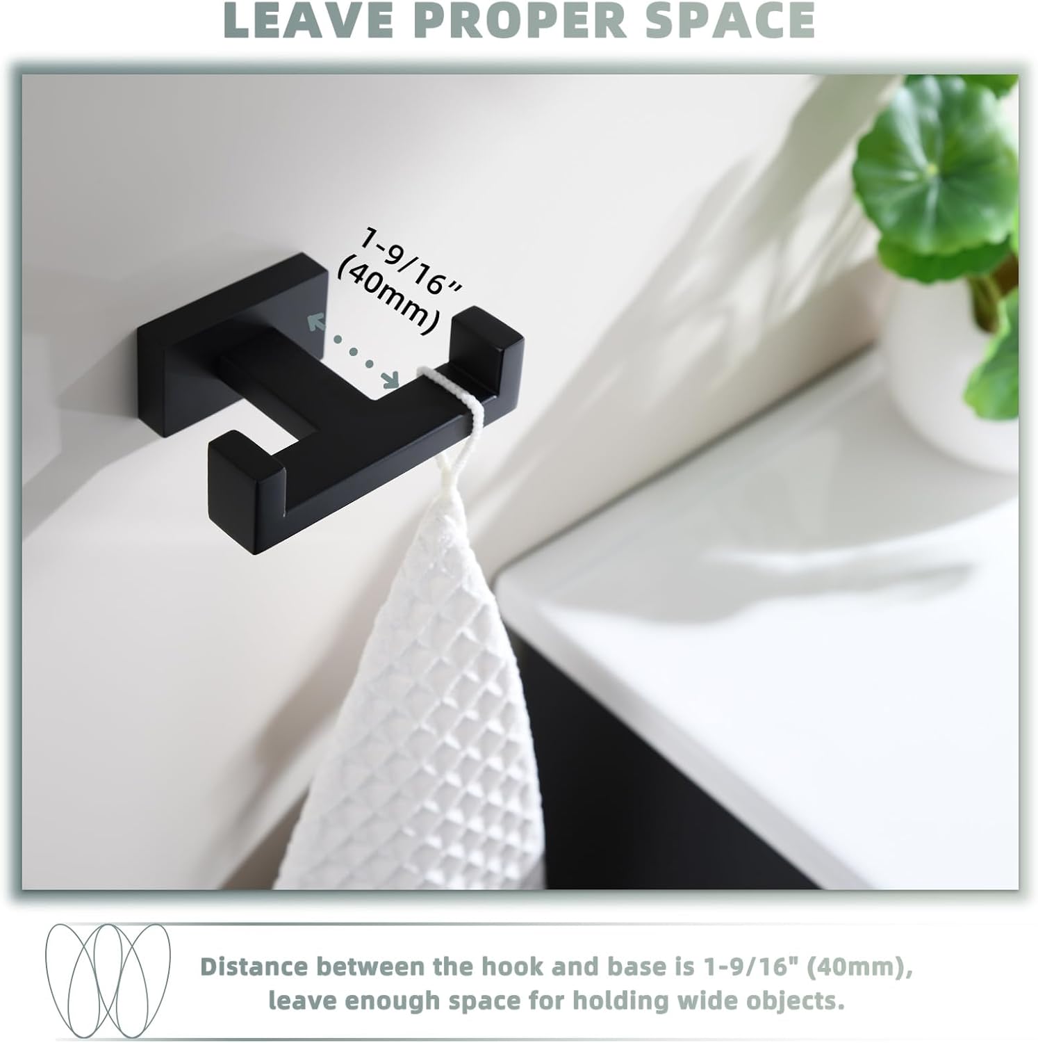 - APPROPRIATE SIZE: two hooks space 2-15/16"(75 mm), allows enough air to dry out damp towels, distance between the hook and base is 1-9/16"(40 mm), you could place wider stuff on it