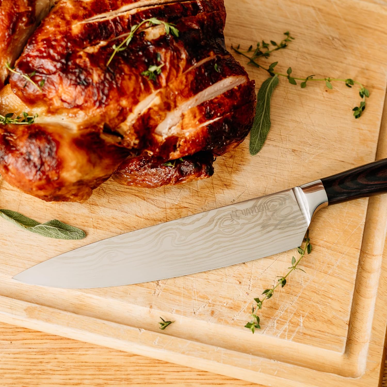 - Beautiful Pattern: The special waved pattern blade is particularly striking (Cr17 steel kitchen knives, not real Damascus).