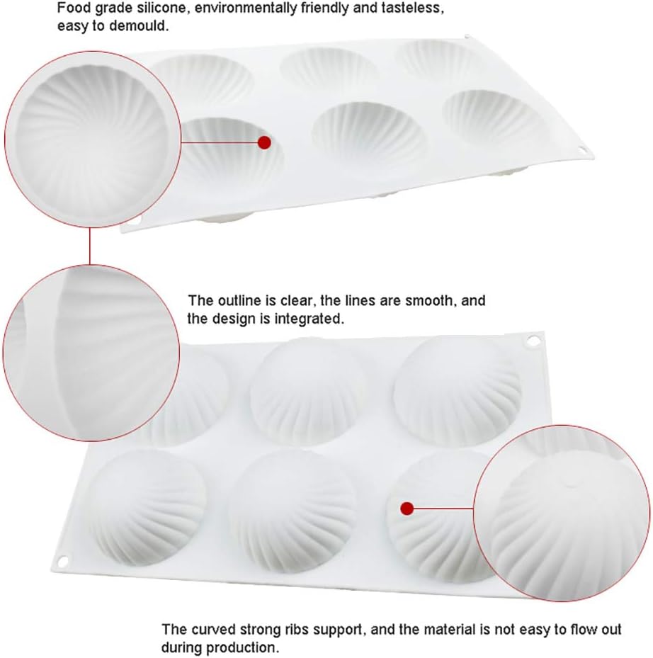 OCPO Kitchen Swirl Silicone Mold for Baking Mousse Cake, Pastry, Chocolate, Dessert, Pudding, Jelly, Cake Decorating Mold, 3D Swirl Shape (6-Cavity)
