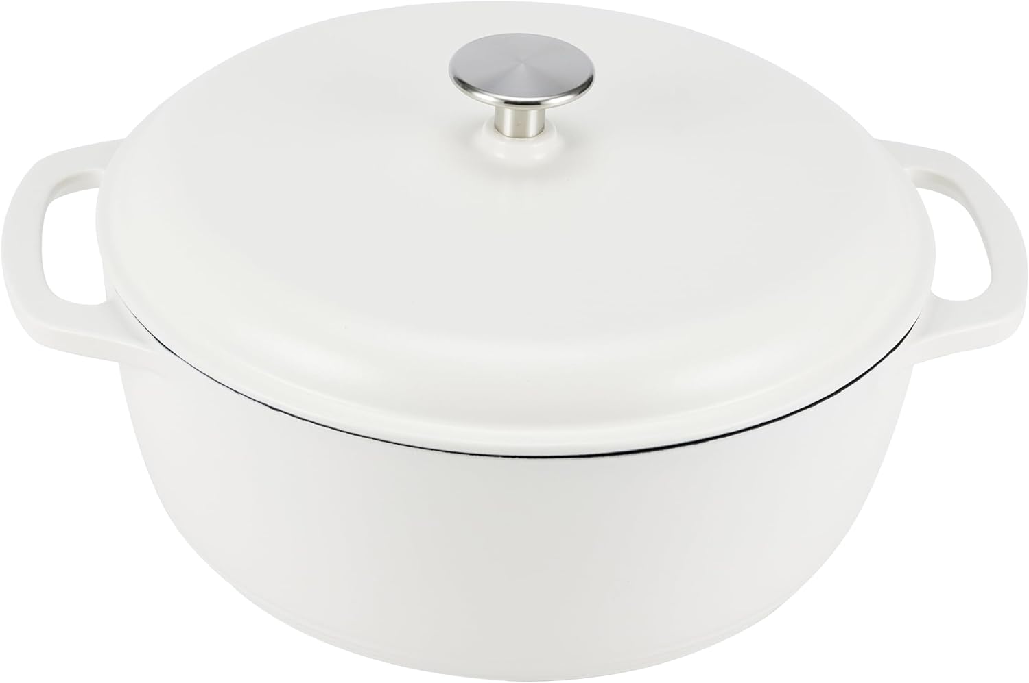 Amazon Basics Cast Iron Dutch Oven Pot with Lid, Enameled, Round, Dual Handles, Heavy-Duty, Medium, 6-Quart, Matte White