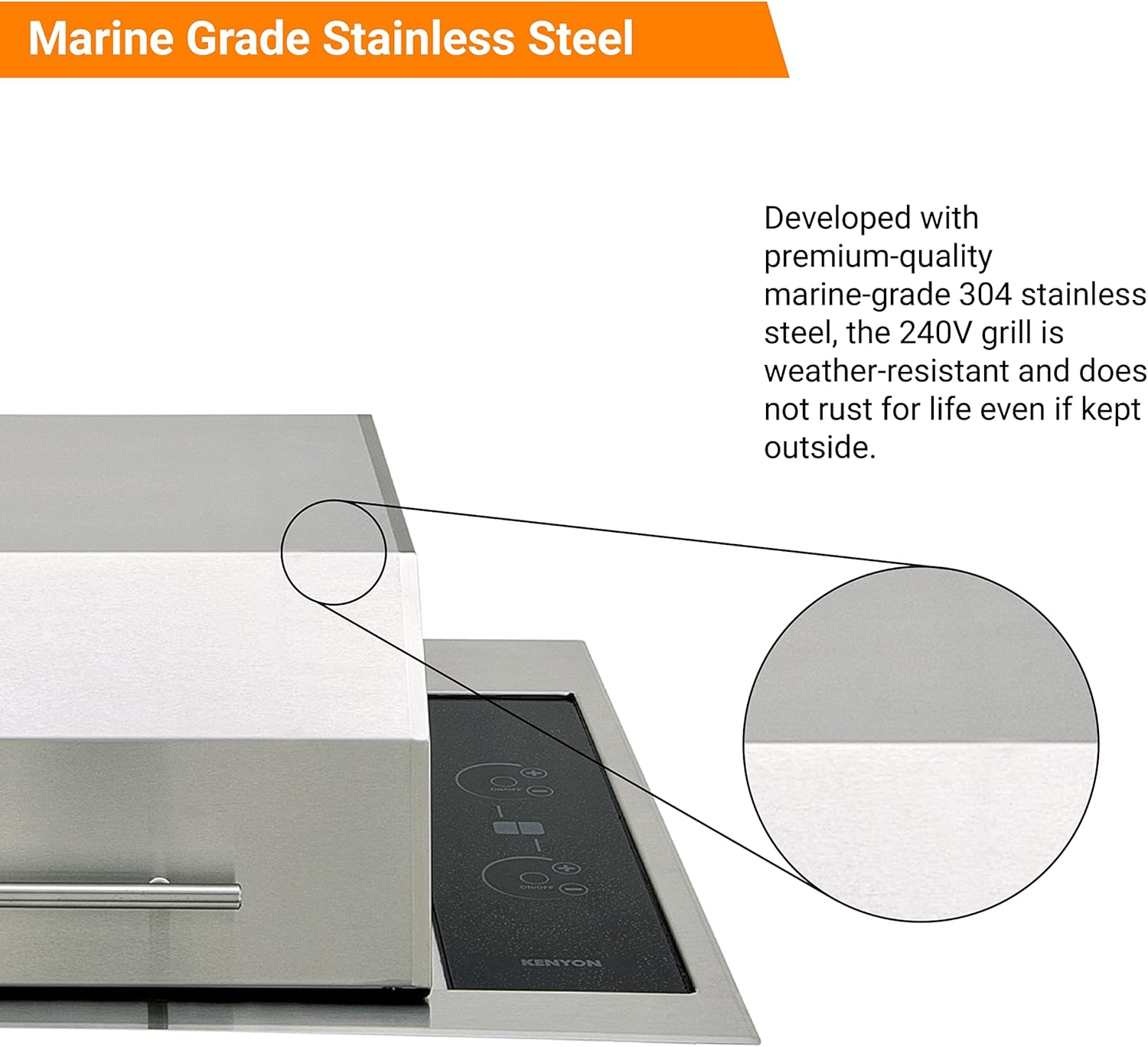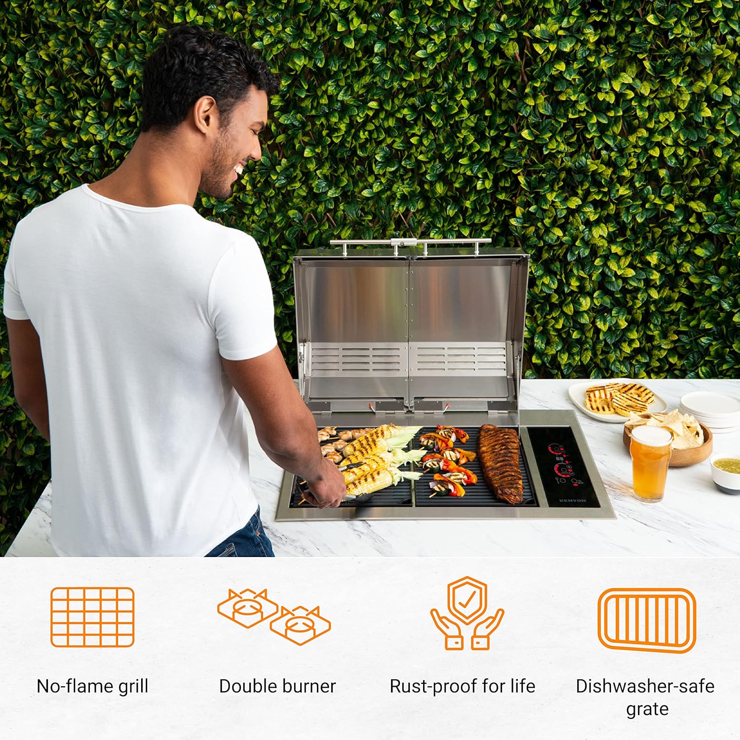 • Built-In Electric Grill: Kenyon B70405WH Texan Built-In electric grill has a smooth mounting flange for stone countertops. With 310 sq. inches of cooking area, the grill is suitable for outdoor kitchens where gas or charcoal grill options are not viable.