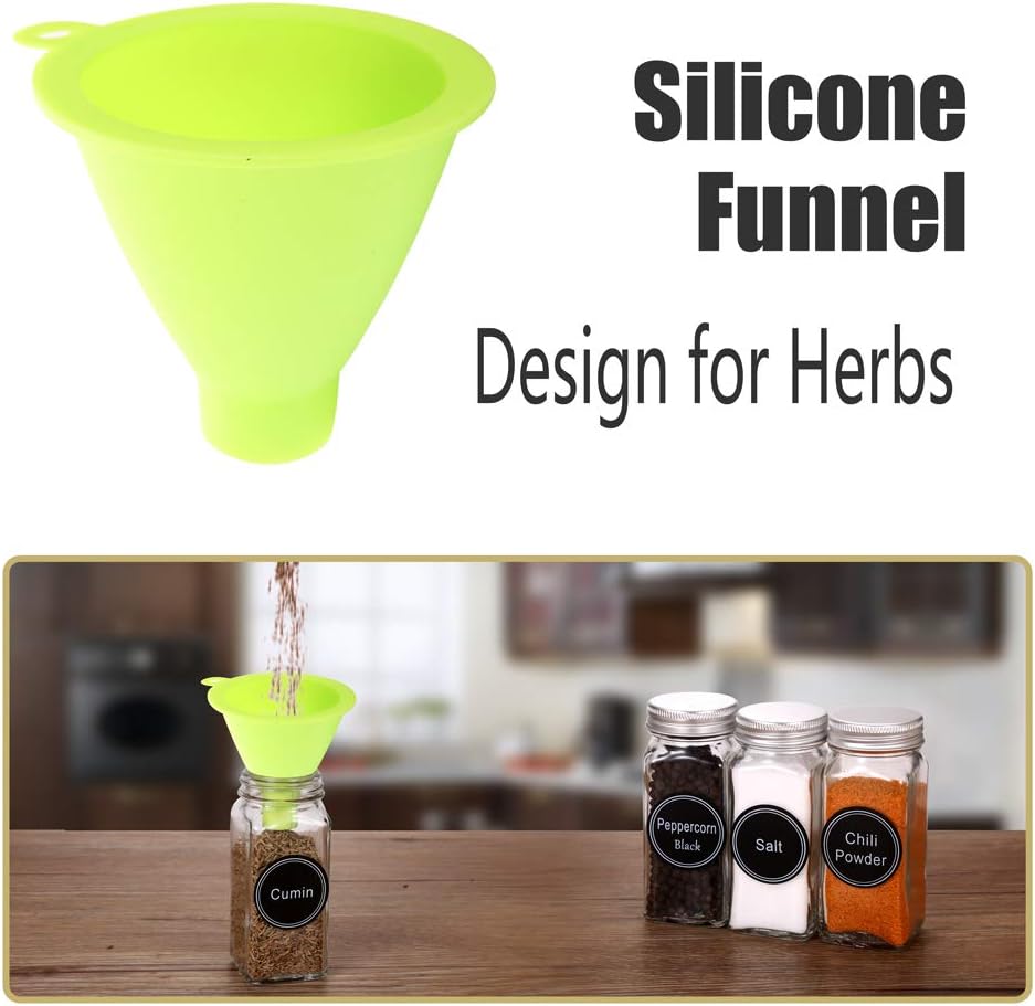 - The funnel specially designed for spice makes it easier to add new spices to your spice containers.