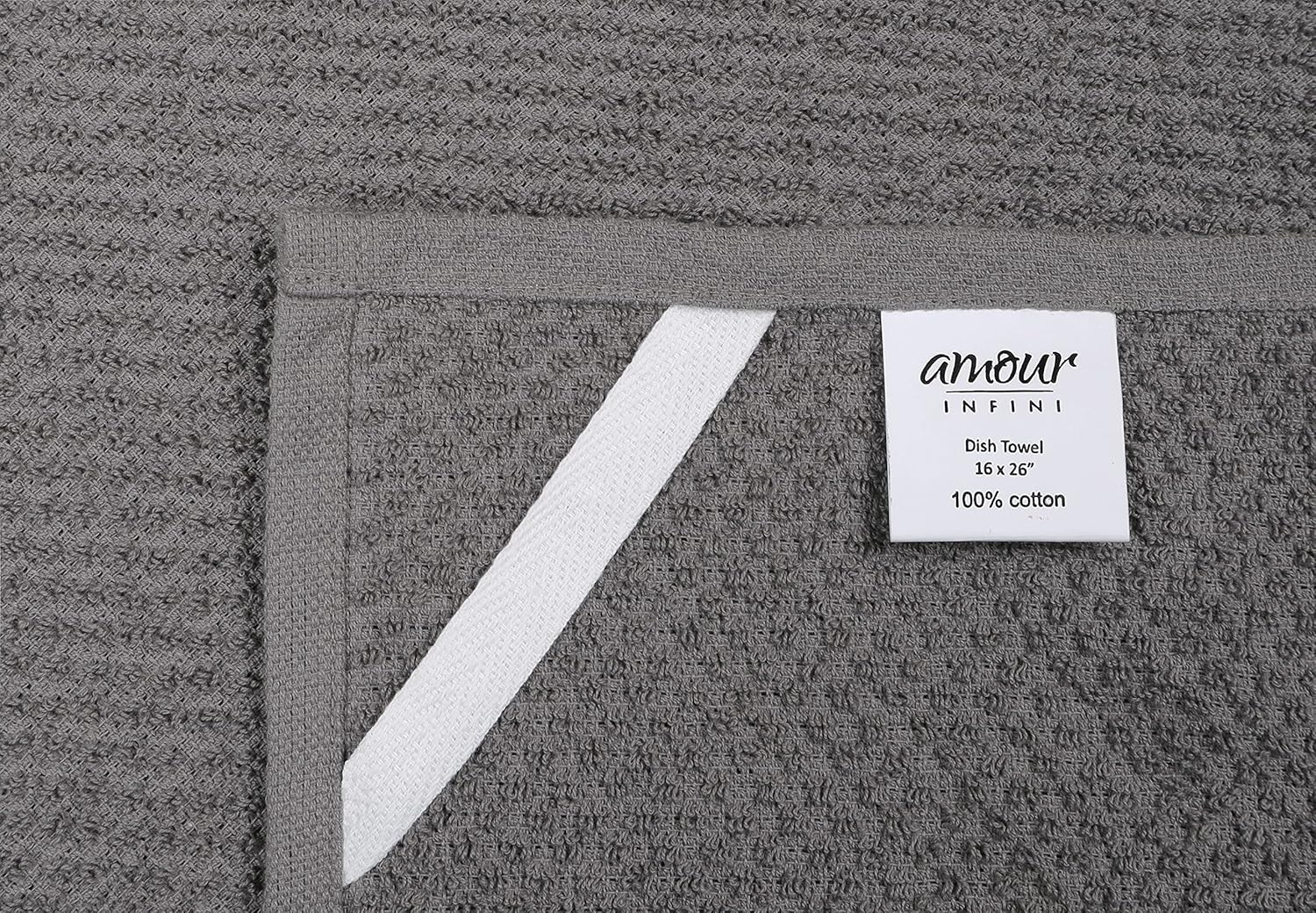 AMOUR INFINI Kitchen Towels Pack of 4 - Absorbent, Quick Drying Premium Cotton Tea Towel - Kitchen Linens 16x28 Inch Dish Towels with Hanging Loop (L.Grey)
