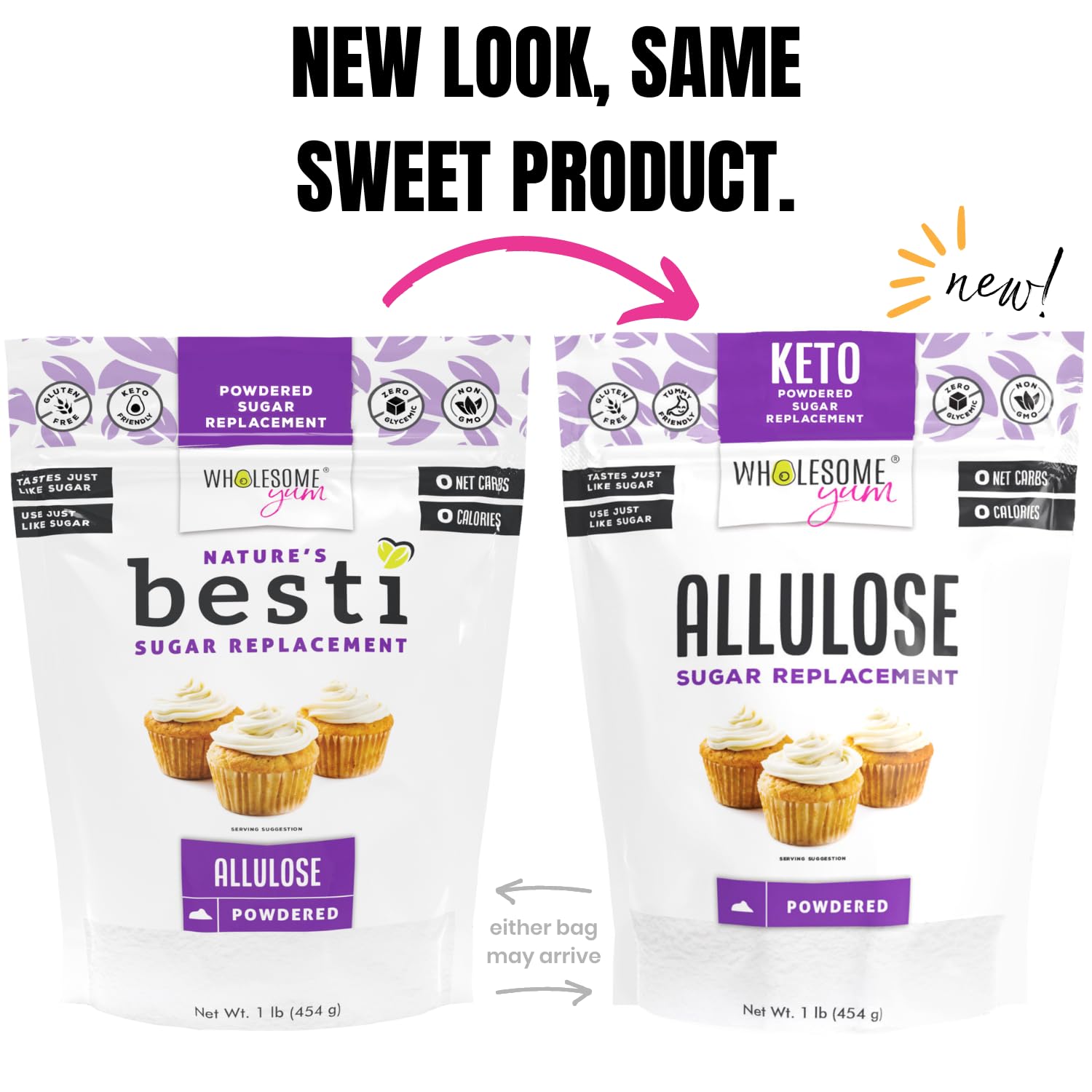 - NATURAL POWDERED SUGAR REPLACEMENT. Wholesome Yum confectioners' allulose sweetener is a plant-based rare sugar WITHOUT the carbs or sugar spike.