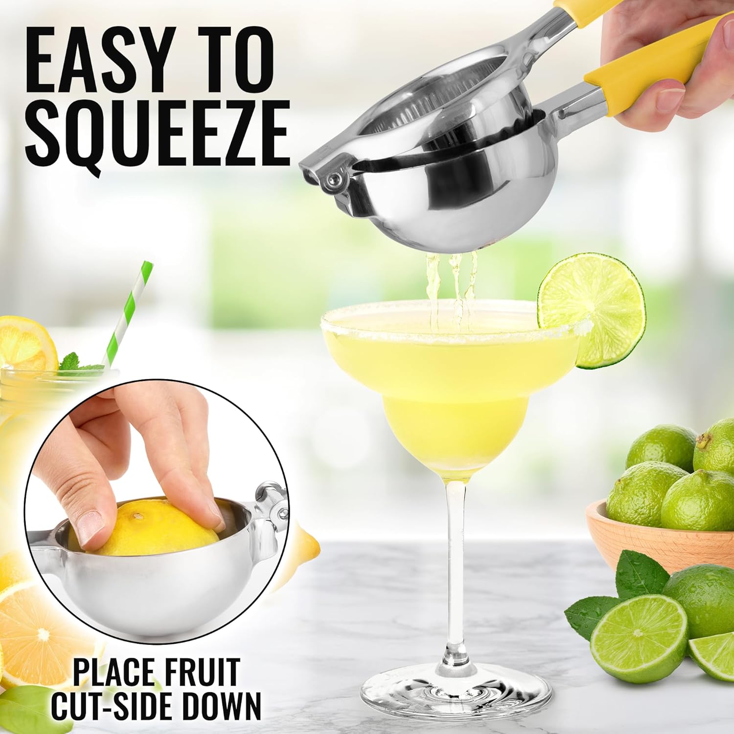Zulay Lemon Squeezer Stainless Steel with Premium Heavy Duty Solid Metal Squeezer Bowl and Food Grade Silicone Handles - Large Manual Citrus Press Juicer and Lime Squeezer Stainless Steel (Yellow)