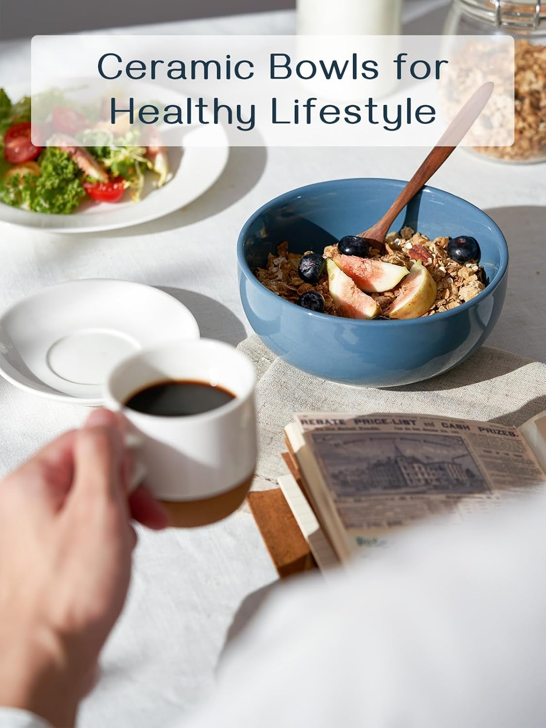 - Versatile Size: Deep and Classic 22 OZ bowls set are perfect for cereal, soup, nuts, salad, fruit, rice, and noodle without spillage. Ideal for family dinners, food storage, breakfast oatmeal, restaurant service, parties, and holiday gifts.