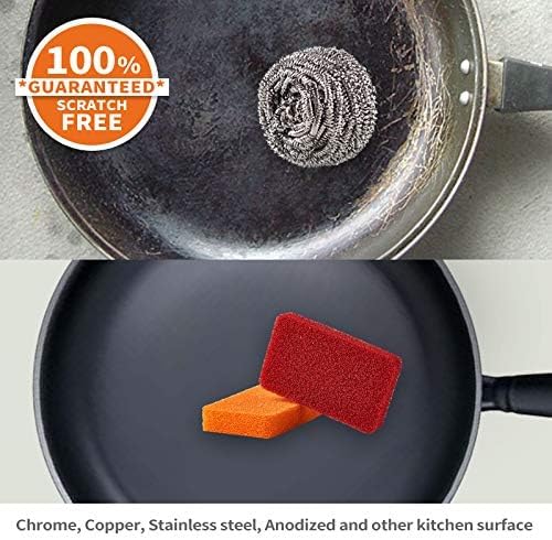 - 100% NON SCRATCH: Non-Scratch Scouring Pad that scours away tough burned stains and messes with ease and cuts through messes while protecting your surfaces.