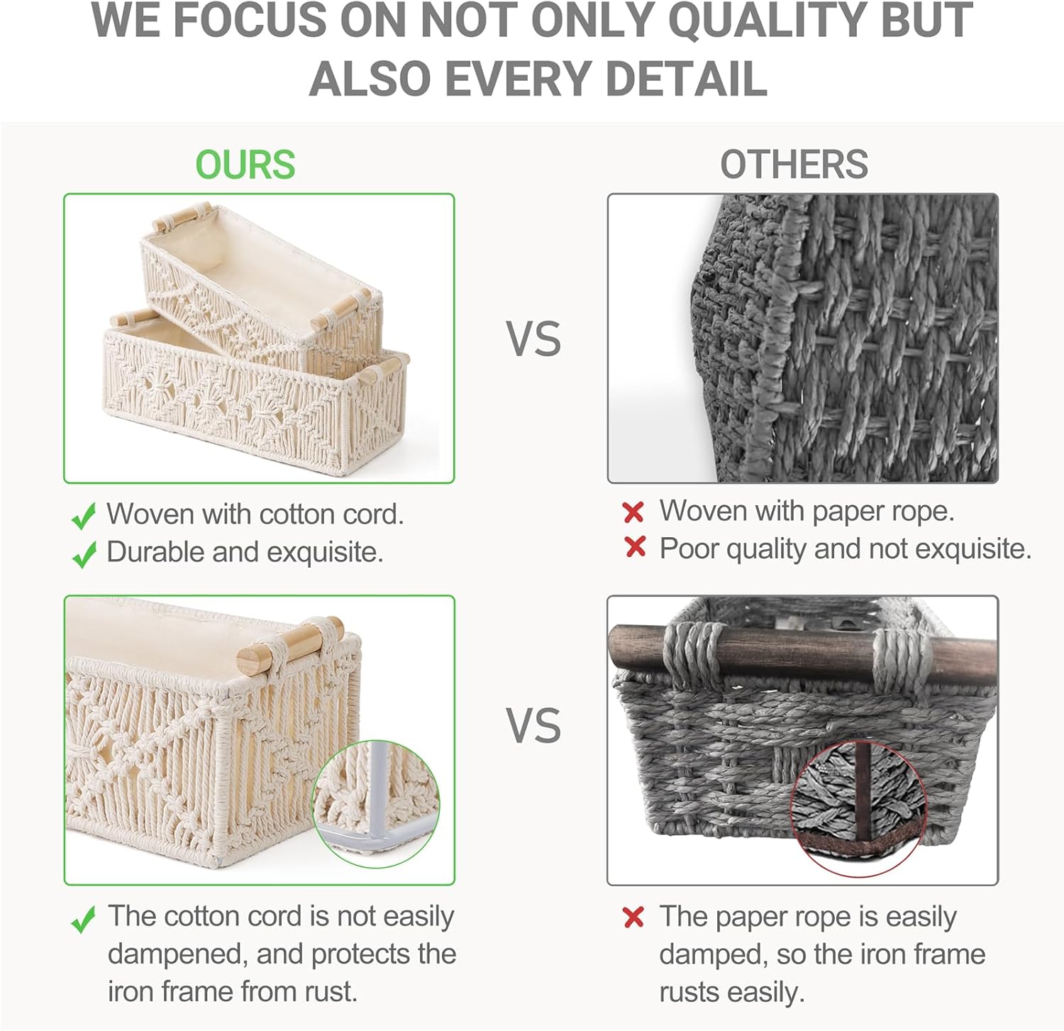 - PERFECT ADDITION TO BATHROOM DECOR. These cute little baskets evoke a warm and classy taste that both works harmoniously and aesthetically. The neutral colors and sleek design means that it will fit perfectly into any home. Use it to decorate, organize and store items, keep the home clean and comfortable. --( It is protected by intellectual property right.)