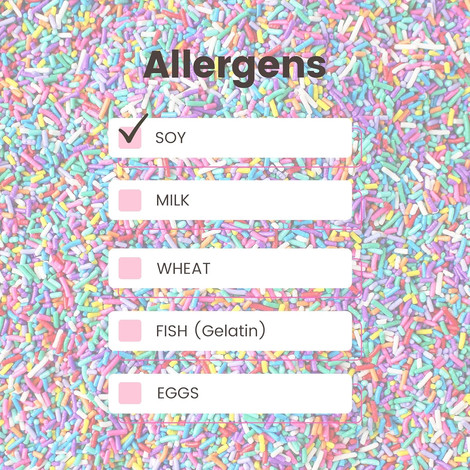 - Allergen & Safety Notice: Made in a facility that processes wheat, eggs, milk, soy, and tree nuts. Some blends contain hard sugar pearls and dragee rods, which may pose a choking hazard for children under 1