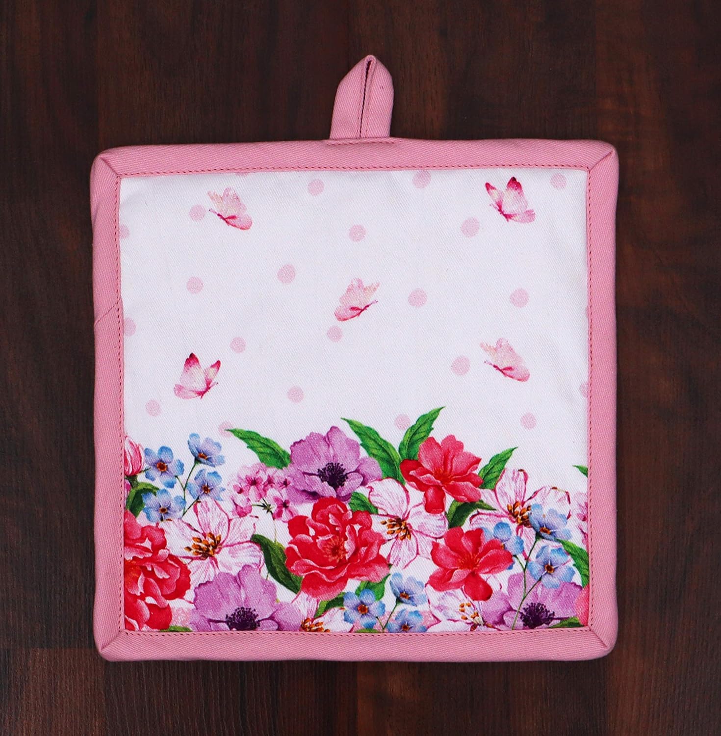 - ARTISTIC ELEGANCE & ECO-FRIENDLY PRINTING: Embrace elegance with our kitchen accessories featuring hand-drawn designs, digitally transformed and printed on soft cotton canvas using eco-friendly neo pigment dye. The Pot holder showcases a coordinated theme design on the backside, adding an extra touch of sophistication. Explore the beauty of our AMOUR INFINI collection.