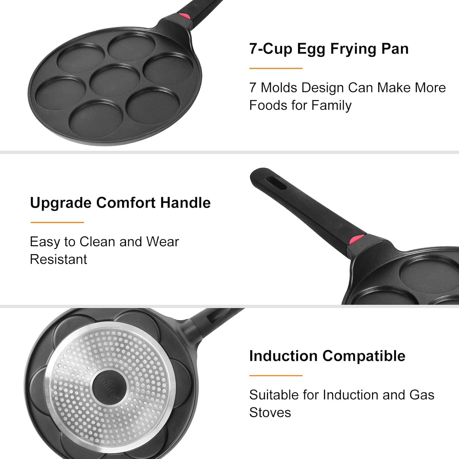 - Heats Quickly & Evenly – Made of sturdiness die cast aluminum, durability and light weight. 3 - layer thickened pot bottom evenly heated ensures maximum heat transfer for fast, not leave dark spots on your mini pancakes / omelets.