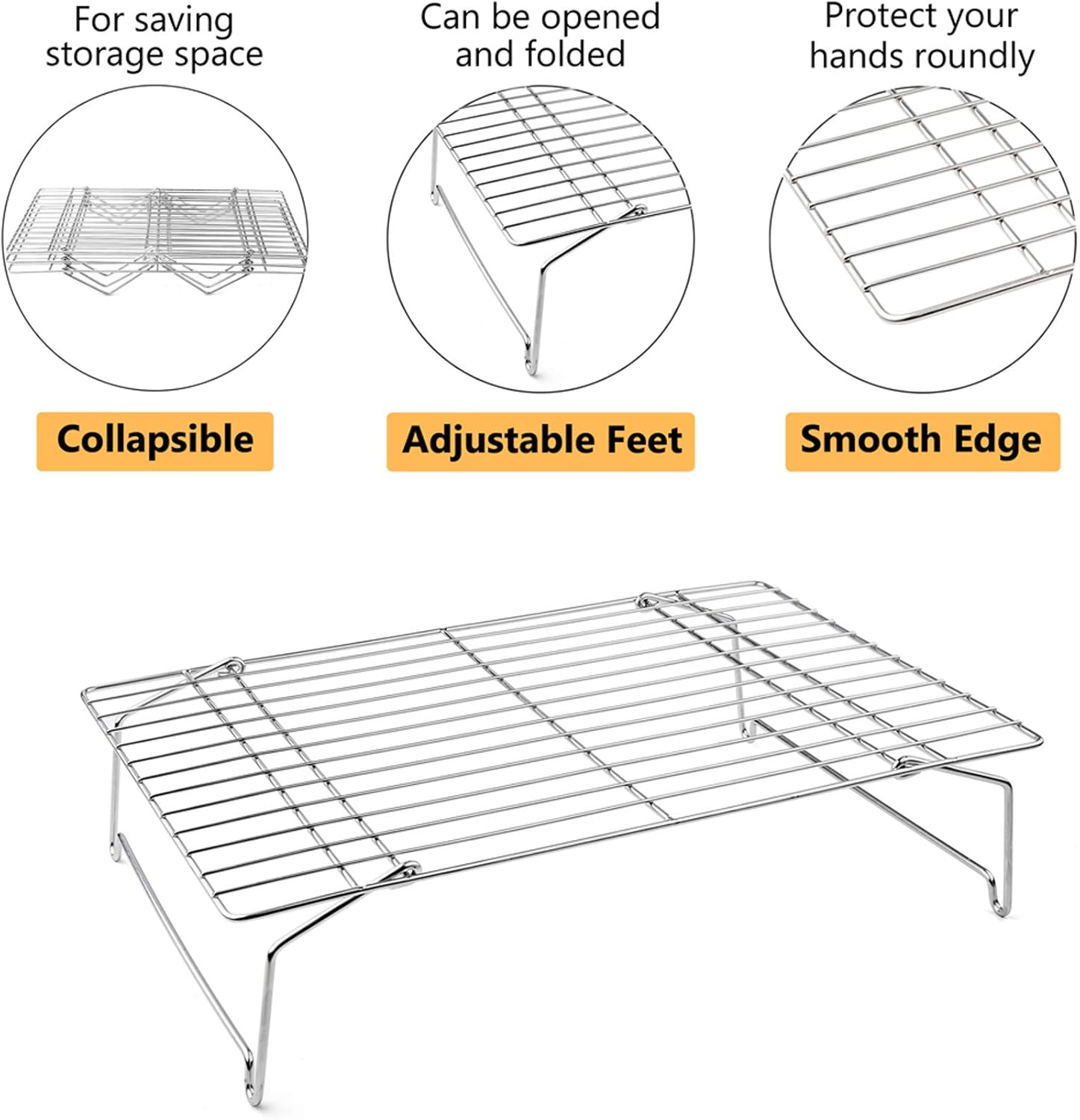 - ▶FLEXIBLE FEET◀ The flexible feet can be swung over 90°, Come with 3.5-inch height when it opened fully, Make the rack stack stably on another rack, Provide higher and larger space to cool and bake more food at once, Collapsible feet for easily folding to 1.3-inch height, Easy storage in your cabinet or drawer