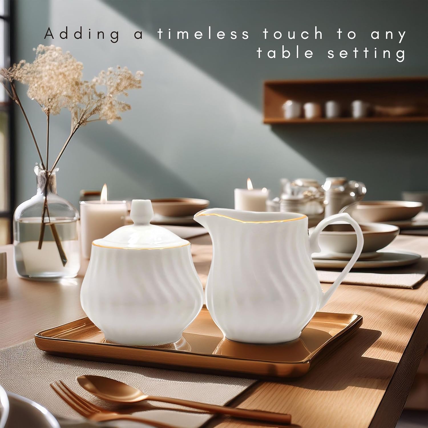 Sugar and Creamer Set - Porcelain Sugar and Creamer Vintage Tea Set with Gold Trims & Embossed Swirls - Exquisite Fine China Tea Set for Parties & Celebrations - Imperial Gold Set by Lynns