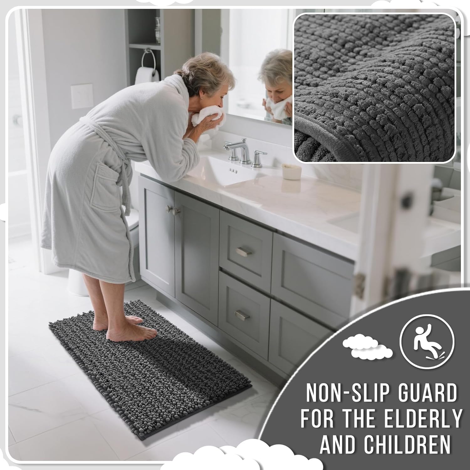 Yimobra Large Bathroom Rugs Non Slip Washable 36x24 Inch - Ultra Soft Absorbent Chenille Bath Mat, Quick Dry Shaggy Floor Carpet for Tub Shower, Dark Gray Home Decor Accessories