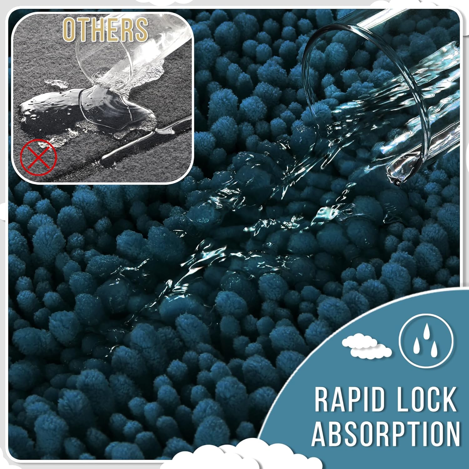 Yimobra Large Bathroom Rugs Non Slip Washable 36x24 Inch - Ultra Soft Absorbent Chenille Bath Mat, Quick Dry Shaggy Floor Carpet for Tub Shower, Peacock Blue Home Decor Accessories