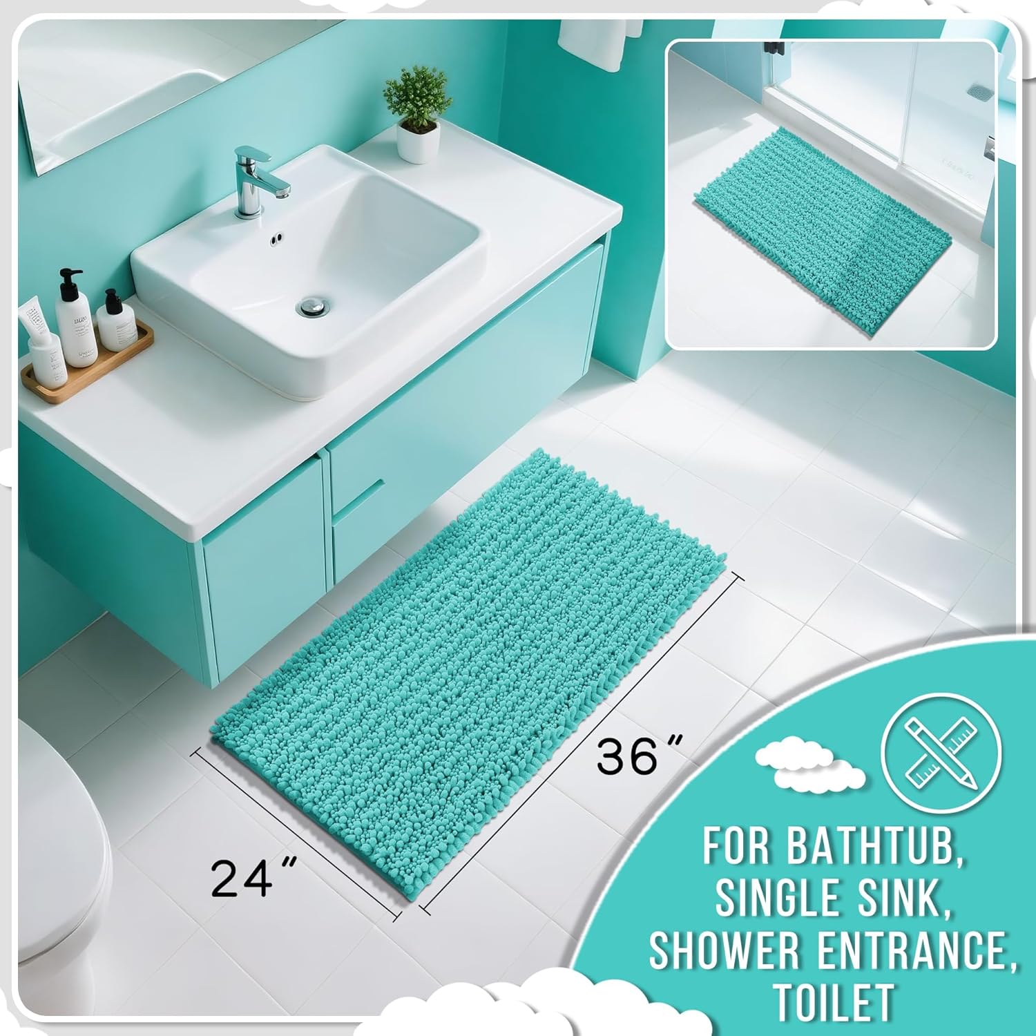 - Ultimate Cloud-Like Soft Comfort: Experience walking on clouds with our extra thick chenille bathroom mat! The ultra plush high pile density cradles your feet, banishing cold tiles after showers. It is perfect for adding warmth to any bathroom floor, transforming routine steps into luxury moments