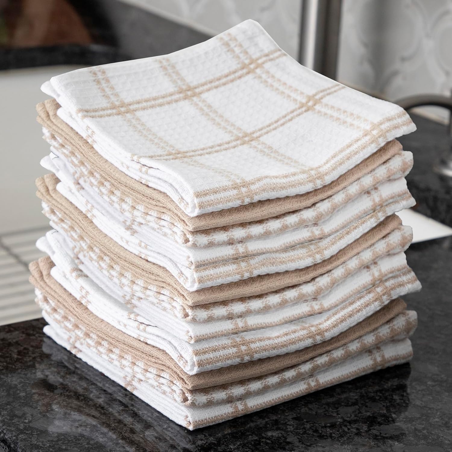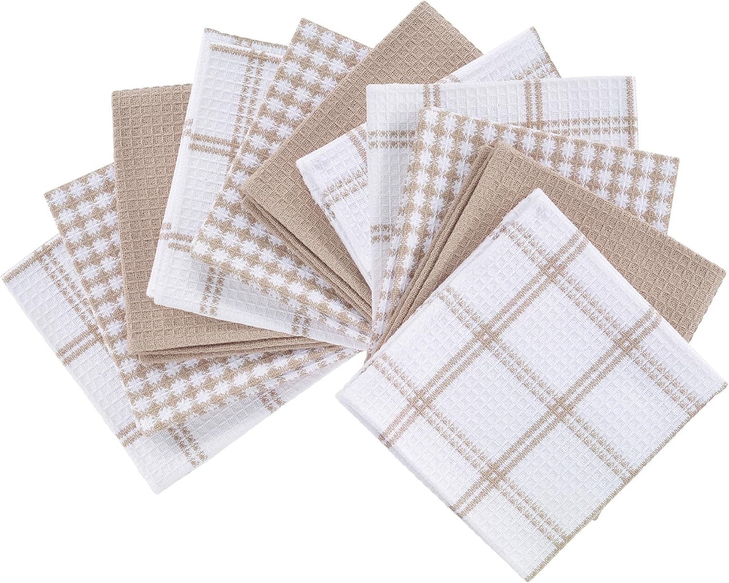 T-fal Premium Waffle Dish Cloths: Highly Absorbent, Super Soft Long Lasting - 100% Cotton, 12"x13" Towel for Cleaning & Drying, (12-Pack), Sand