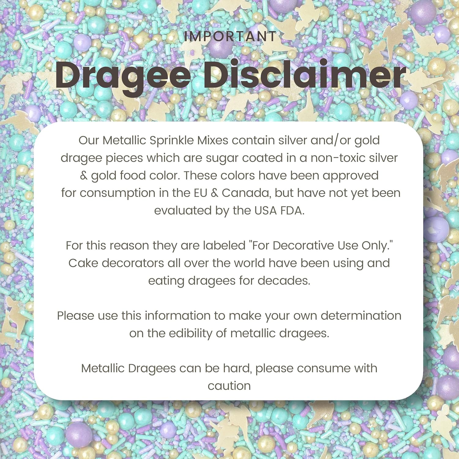 - Metallic Dragees Disclaimer: Silver and gold dragees are commonly used by cake decorators worldwide. While approved for consumption in some regions, they are traditionally labeled as โFor Decorative Use Onlyโ in the U.S. Please use discretion when adding them to your creations