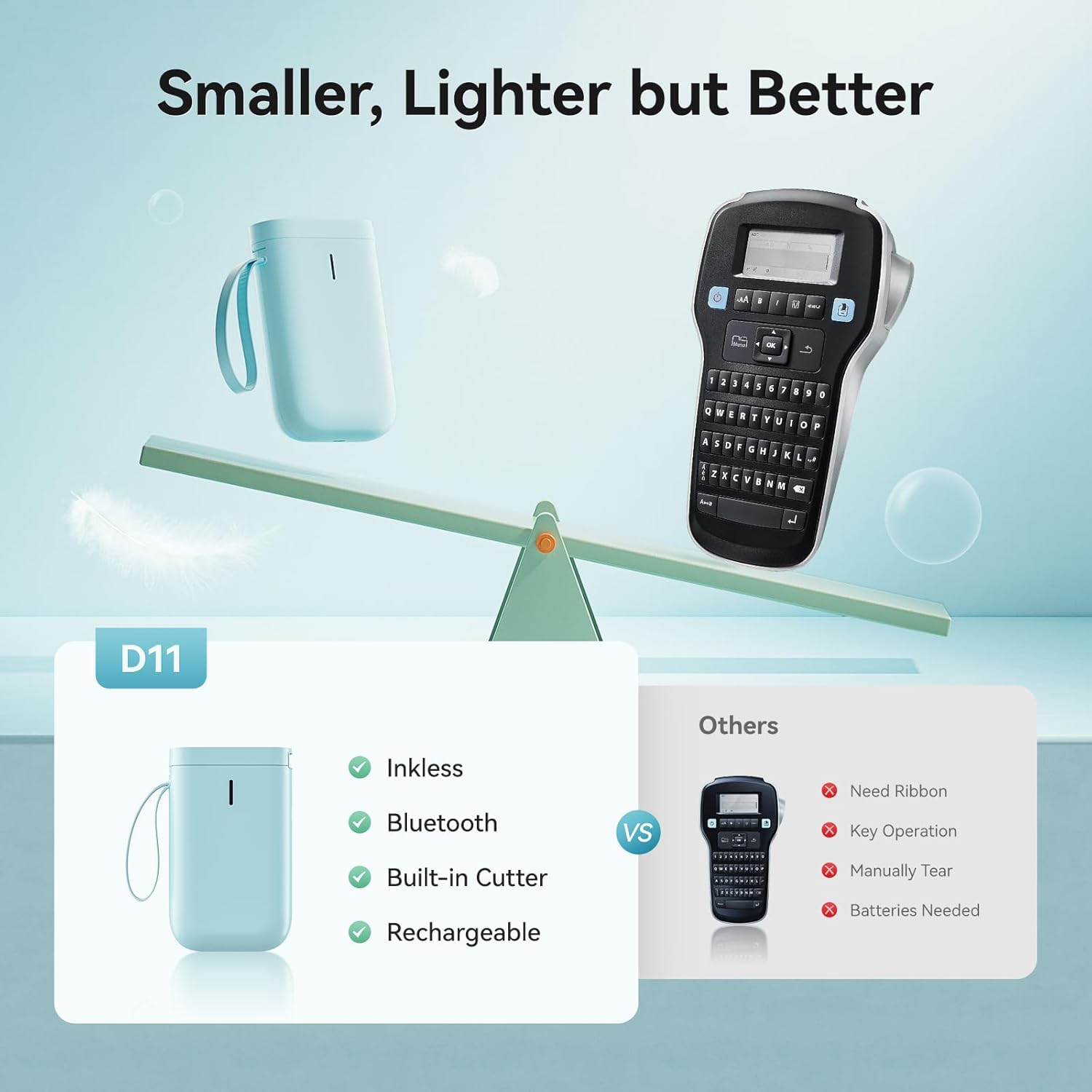 - 【NIIMBOT D11 LABEL MAKER】After the technical updating, we combine the label maker with the smart device, which is more convenient and powerful. The weight and volume are only half of the traditional version. from now on, we bid farewell to the heavy, power-consuming, and money waste old version.
