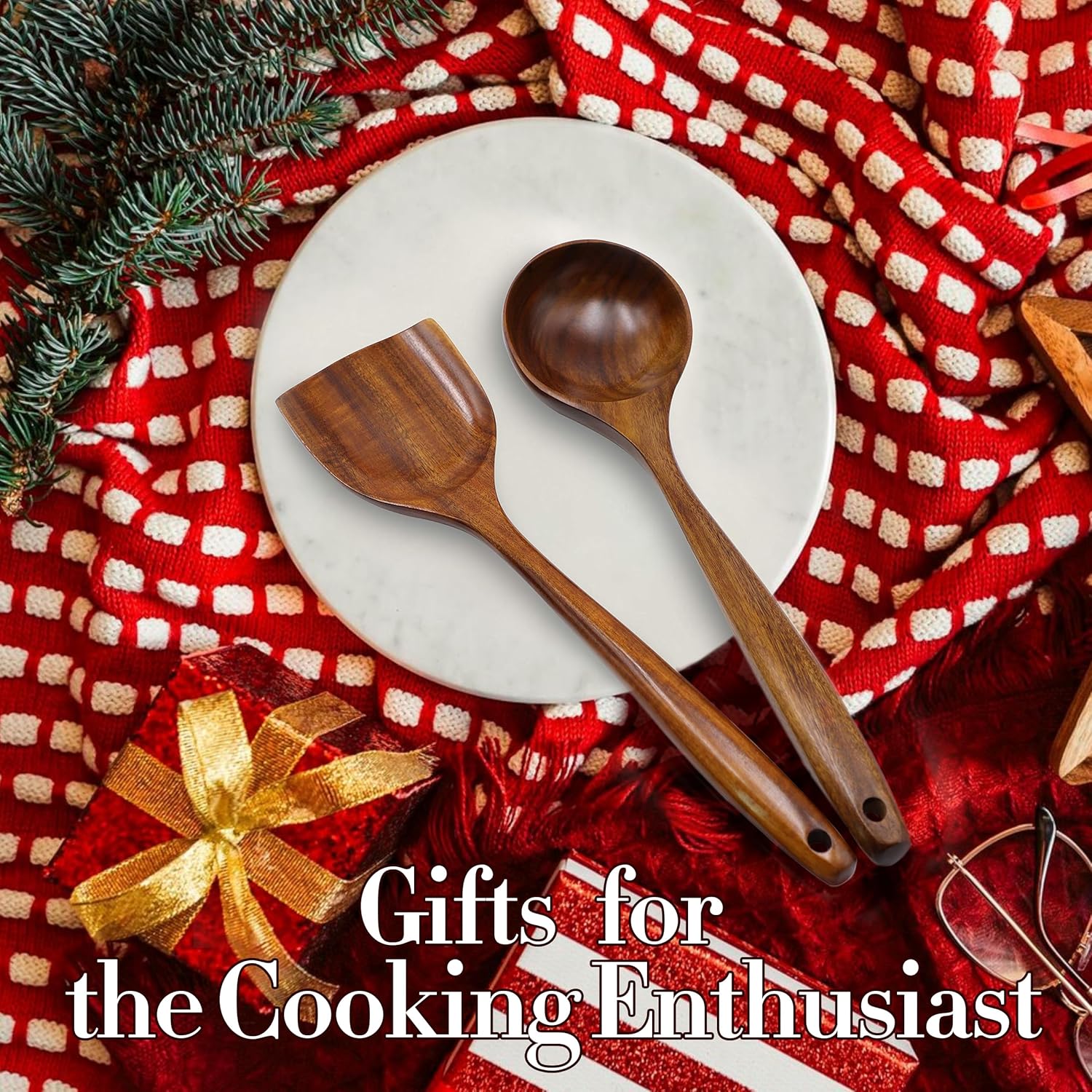 - [Ideal Kitchen Accessories]: Transform your kitchen into a heaven of culinary with our exquisite wooden cooking utensils.Crafted from natural wood and hand-polished to perfection, each piece is free of imperfections, feels as smooth as silk in your hand