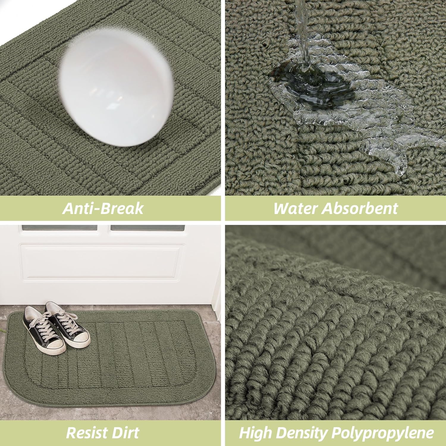 - Stain-resistant: Our kitchen floor mat is made of wear-resisting Polypropylene fibers. The tight sewing makes this kitchen mat set more durable. The rugs for kitchen with great water absorption and stain-resistant properties protect the floor from oil, dampness, sauces or food particles; the slightly raised polypropylene fabric helps to scrap off dirt, dust, grit, mud, sand.