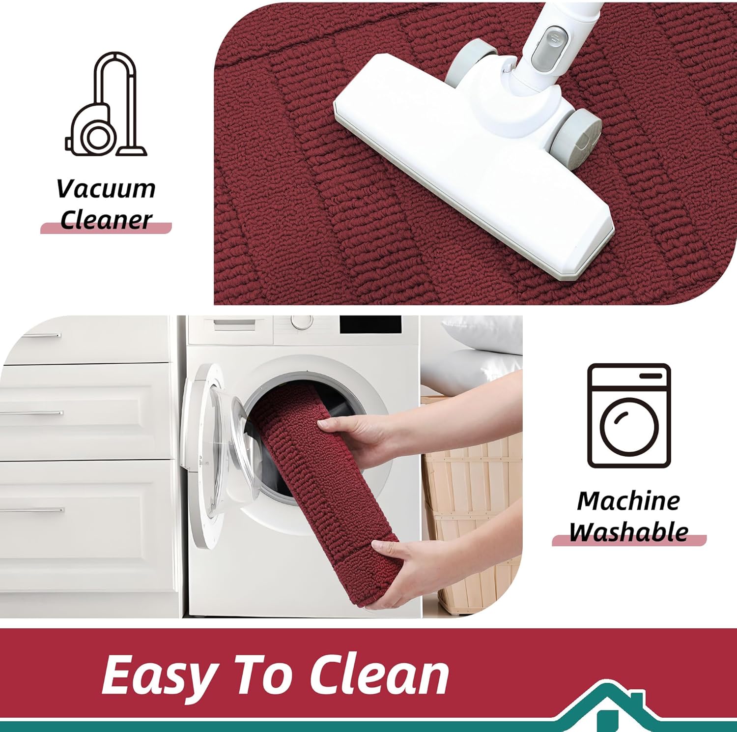 - Easy to Clean: Our kitchen rugs and mats non skid washable are easily cleaned.You can use the vacuum.Also,they are machine washable.Don't worry about fiber falling because of edge locking technology.Our kitchen floor mats can be durable and reusable for long time.Kitchen mat still maintains shape and colors.