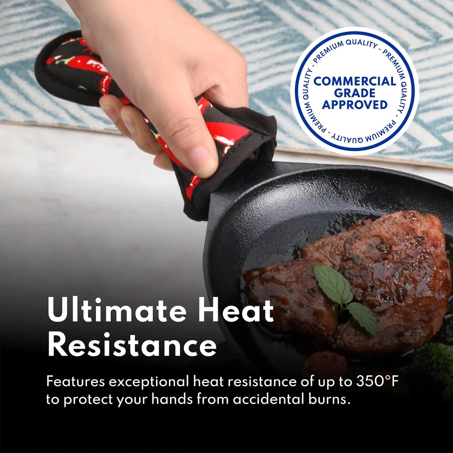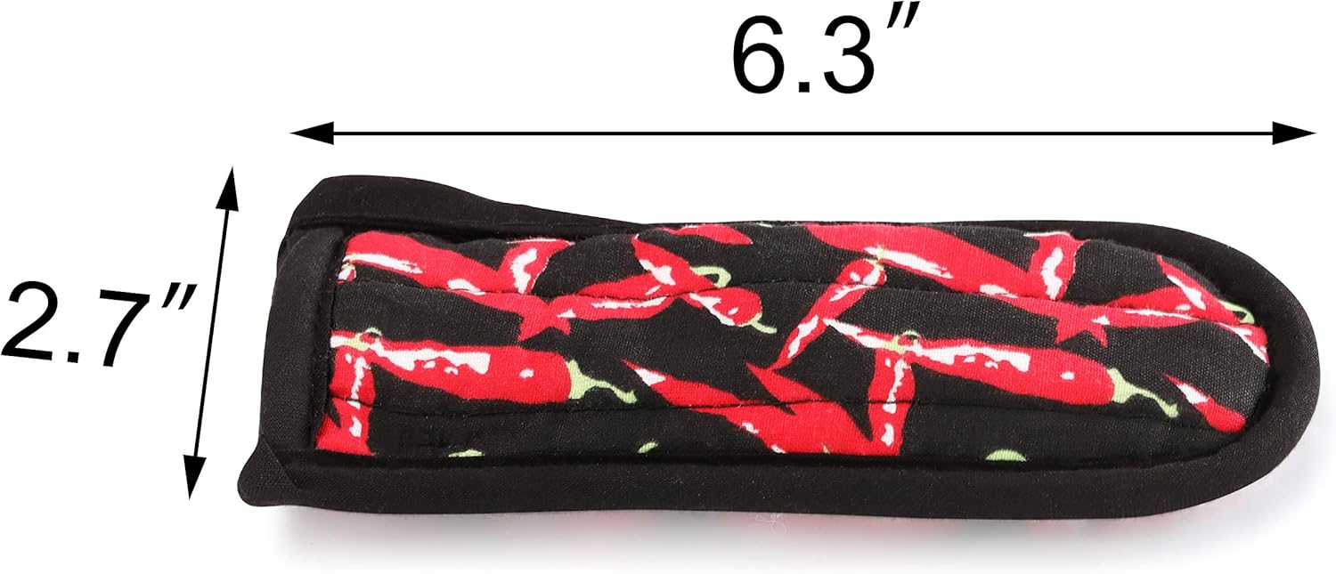 New Star Foodservice 1028744 Commercial-Grade Hot Skillet Handle Cover Holder, Hot Handle Holders/Mitts, Red Peppers Pan Cotton Handle Sleeve, Set of 6