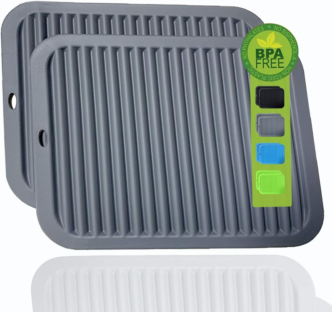 Large Silicone Trivet Mats 2 Pack, Heat Resistant Pot Holder, 9x12 Non-Slip Flexible Durable Pot Coaster for Kitchen Table, Dining Table, Hot Pans, Microwave (Wavy Gray)