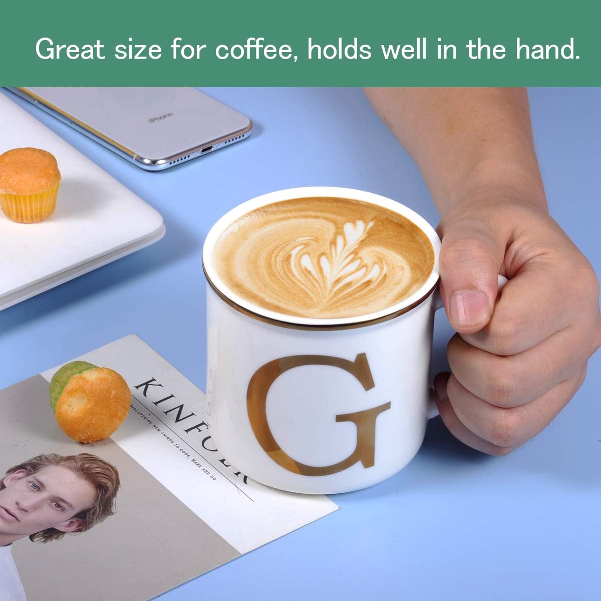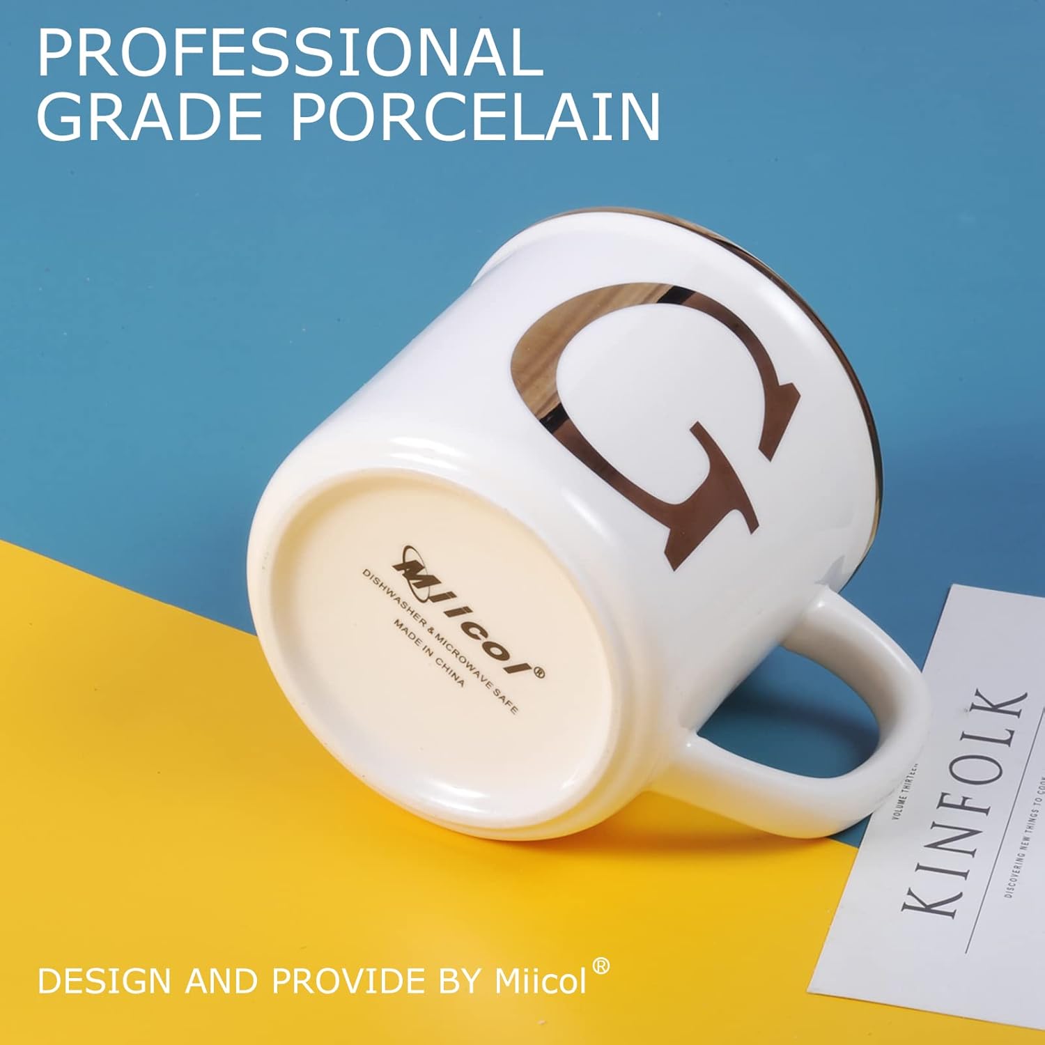 - A Personalized Mug: Showcase your personality with the minimalist design of the MiiCOL ceramic coffee mug, featuring initials. Crafted from pure white ceramic, the mug is adorned with a gold initial on both the front and back, ensuring it is suitable for both right and left-handed use