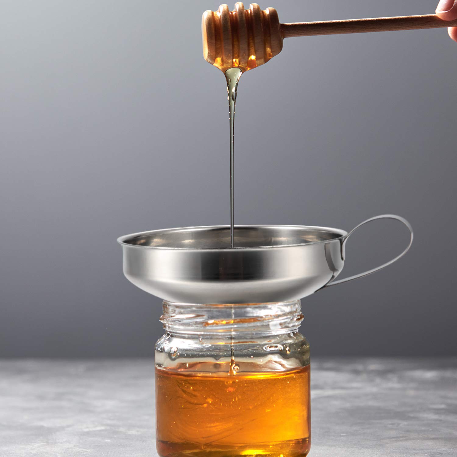 - Good solution for sifting and filling: our kitchen canning funnels and fine mesh strainers can be applied together or separately according to your needs, the funnel can accurately and quickly transport items into bottles and other containers; The strainer can be used to sift flour, filter impurities in fruit juice, milk, and separate food from water and oil