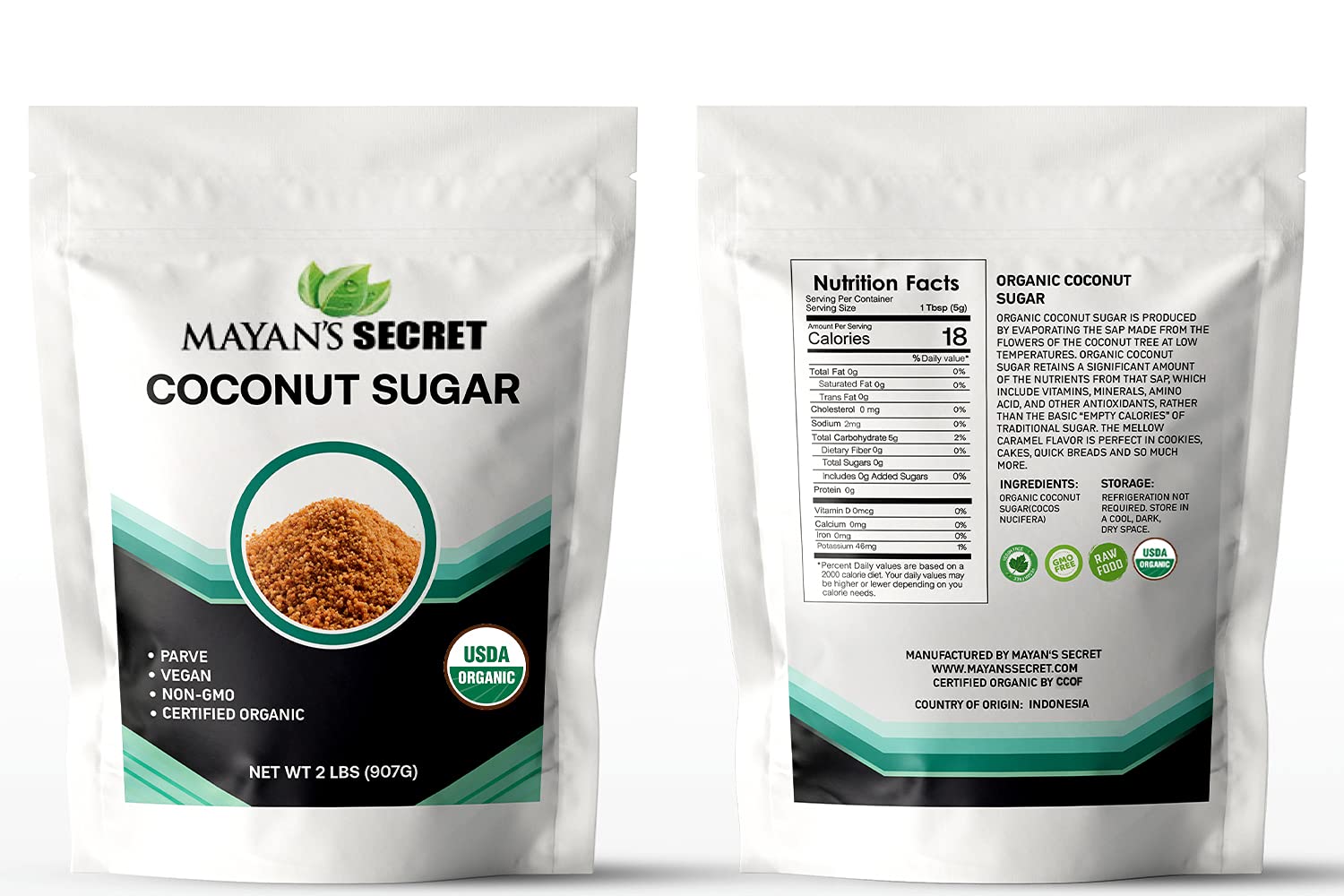 Mayan's Secret 2 lbs USDA Certified Brown Coconut Sugar Organic for Baking - Low Glycemic | Unrefined | Trace Minerals
