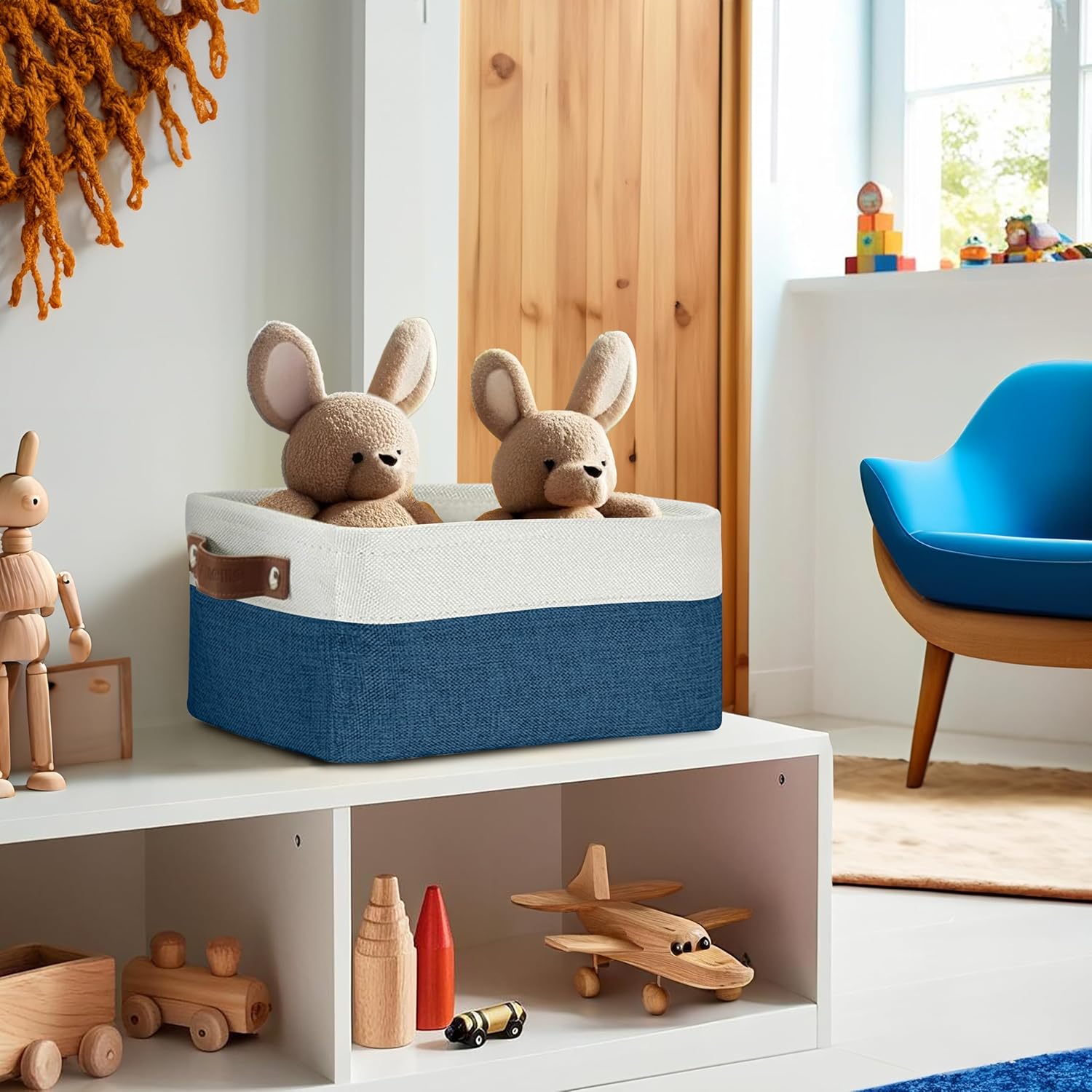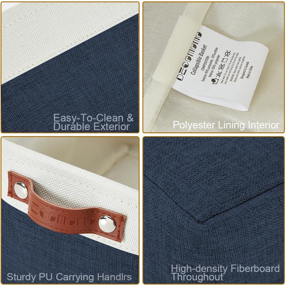 • Durable Design: DECOMOMO's baskets feature a sturdy metal frame, extra thick EVA exterior, polyester interior, 2.5mm MDF fiberboard bottom, and faux leather handles capable of holding up to 15 lbs.