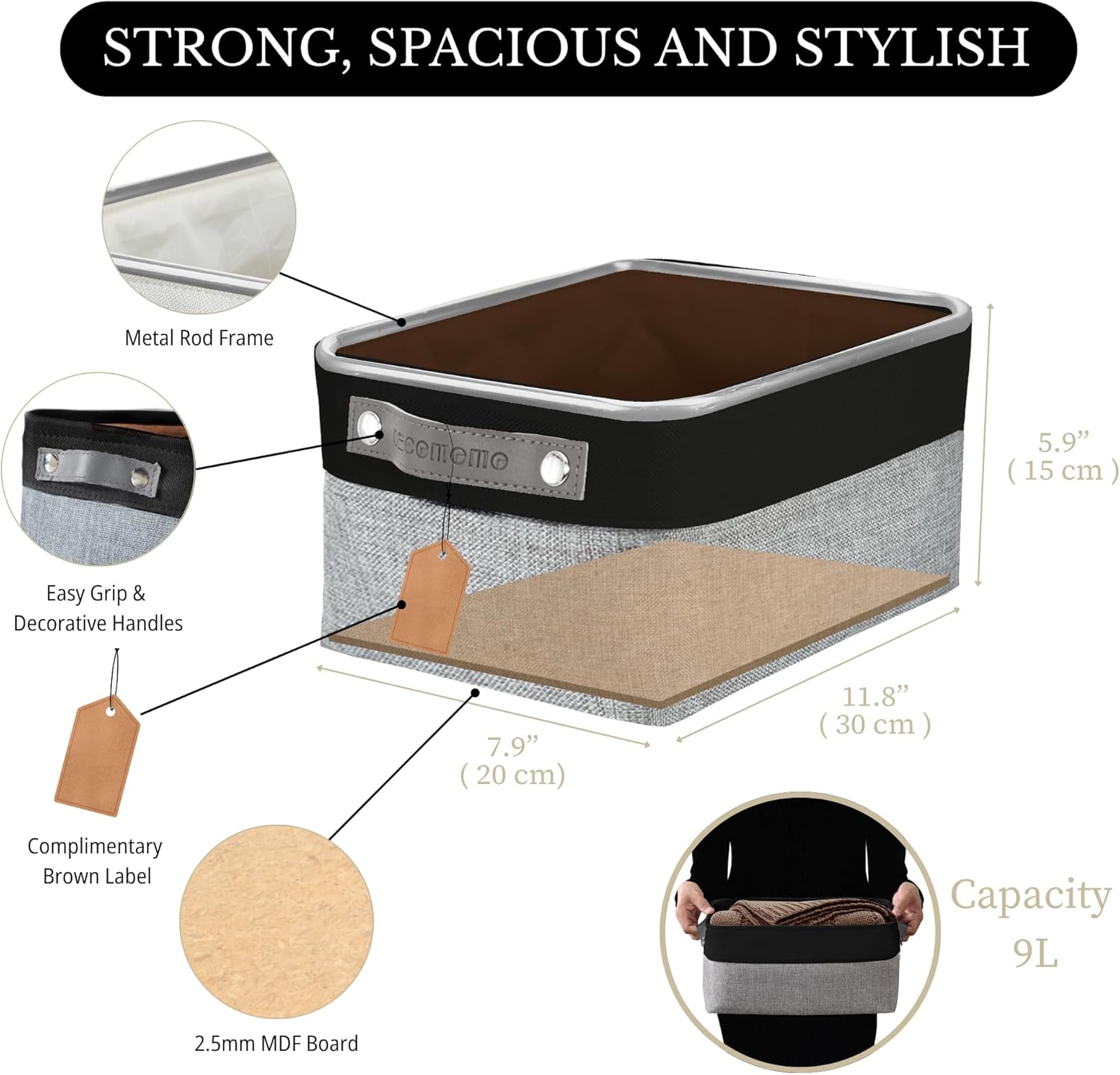 DECOMOMO Small Storage Basket, Closet Storage Bins, Baskets for Organizing Shelves (Grey & Black, Small - 6 Pack)