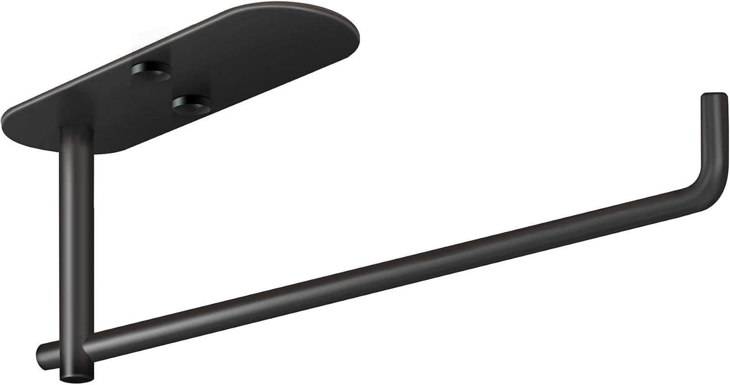 VAEHOLD Self Adhesive Paper Towel Holder Under Cabinet Mount, Wall Mounted Paper Towel Roll Holder for Kitchen, Bathroom, Wall - SUS304 Stainless Steel (Black)