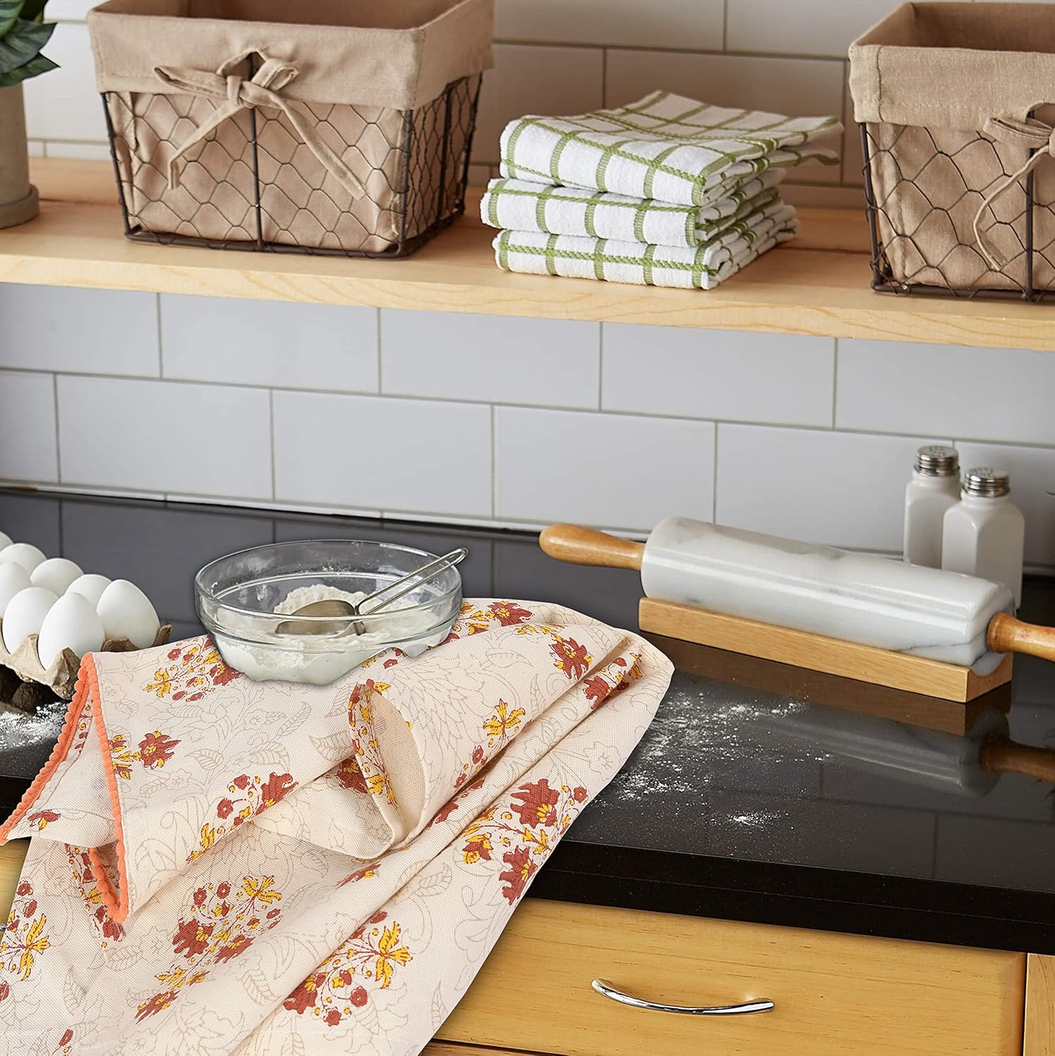 - This Kitchen Tea Towel Set of 4 are perfect to coordiate in any kitchen and make great housewarming and hostess gifts. Durable and highly functional for household, helping to do everything from cooking to cleaning dishes.