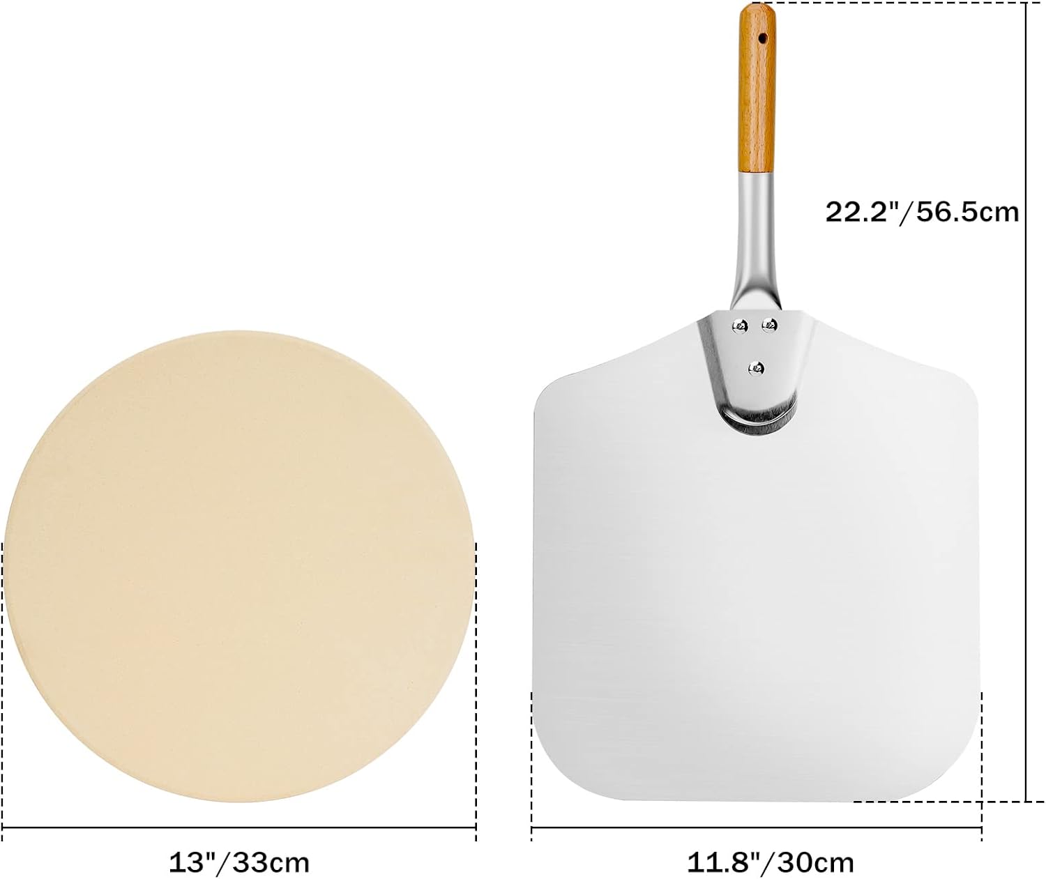 - 【Package include】Includes rotisserie ring, rotisserie kit(with 110v electric motor), 13" round cordierite stone, baking peel and 4 support chips.(Used for supporting your cooking grate)