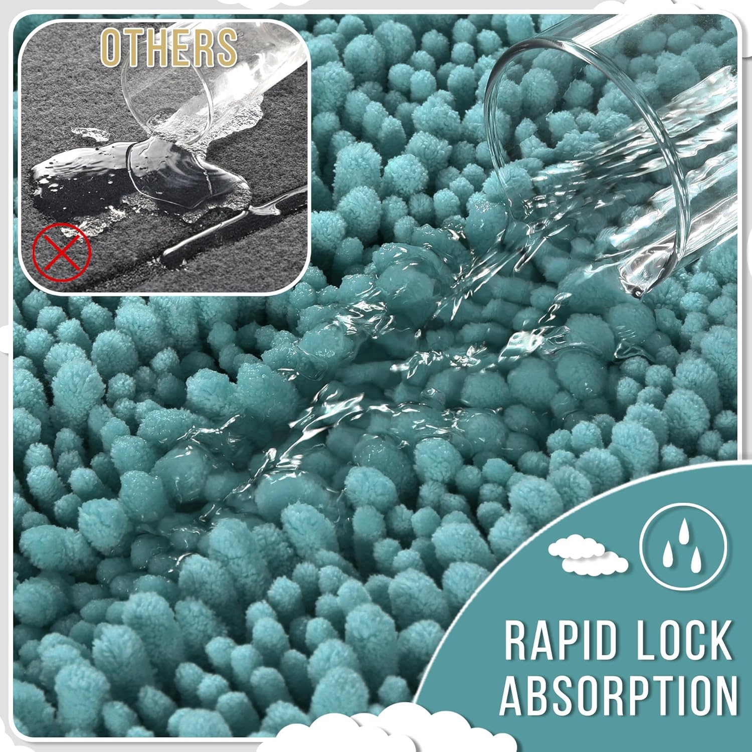 Yimobra Long Bathroom Rugs Non Slip Washable 44x24 Inch - Ultra Soft Absorbent Chenille Bath Mat, Quick Dry Shaggy Floor Carpet for Tub Shower, Teal Blue Home Decor Accessories