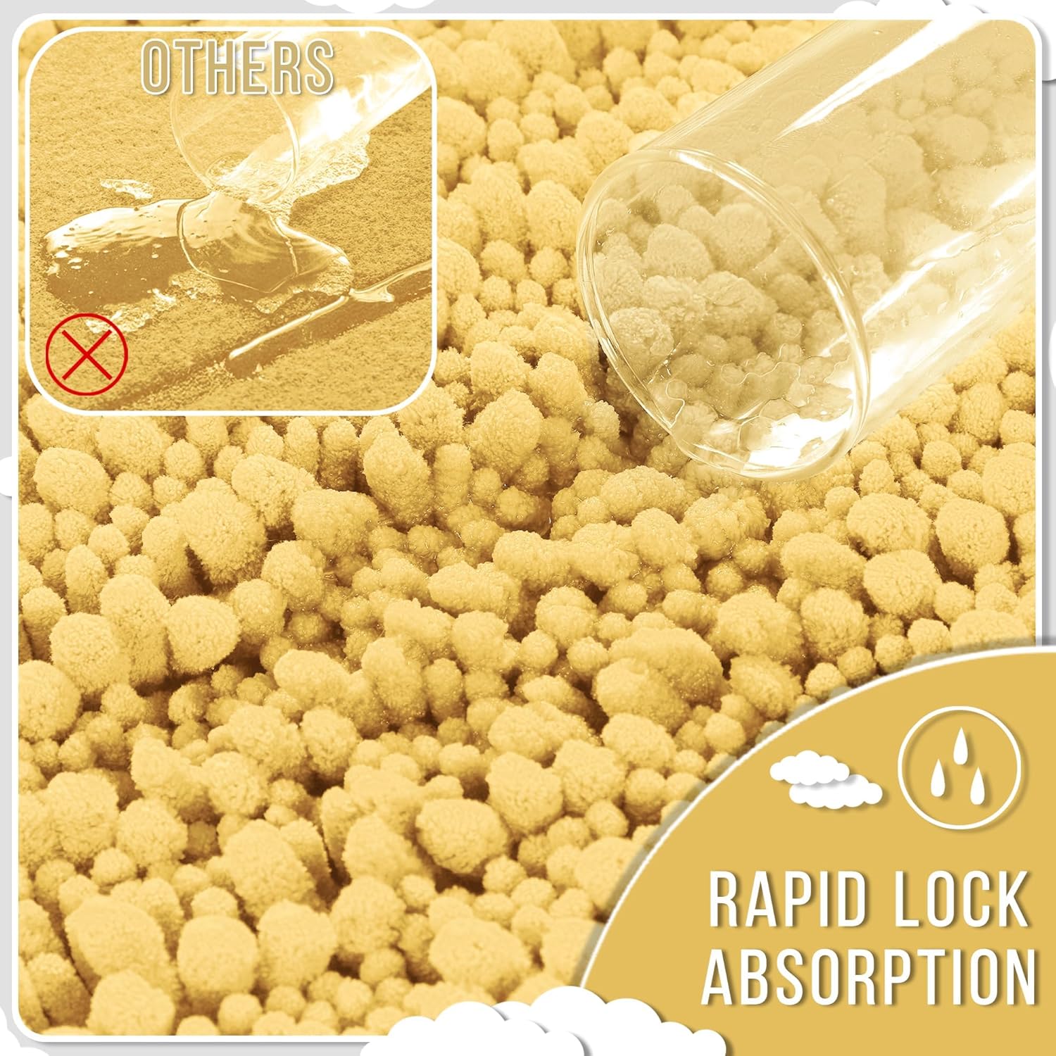 Yimobra Large Bathroom Rugs Non Slip Washable 36x24 Inch - Ultra Soft Absorbent Chenille Bath Mat, Quick Dry Shaggy Floor Carpet for Tub Shower, Yellow Home Decor Accessories