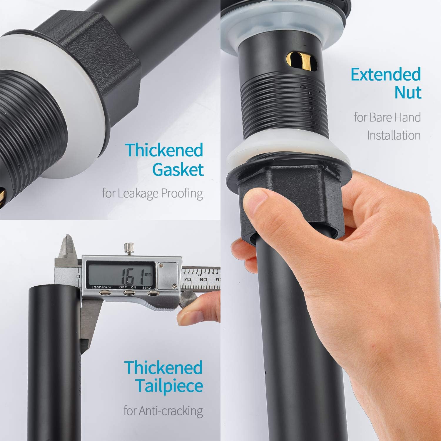 - 【MATERIAL】-Pop-up drain stopper, drain flange, threaded pipe are made from brass, tailpiece is constructed of thickened premium grade 304 stainless steel. All metal construction for maximum durability. Superior finish is corrosion & rust-resistant.