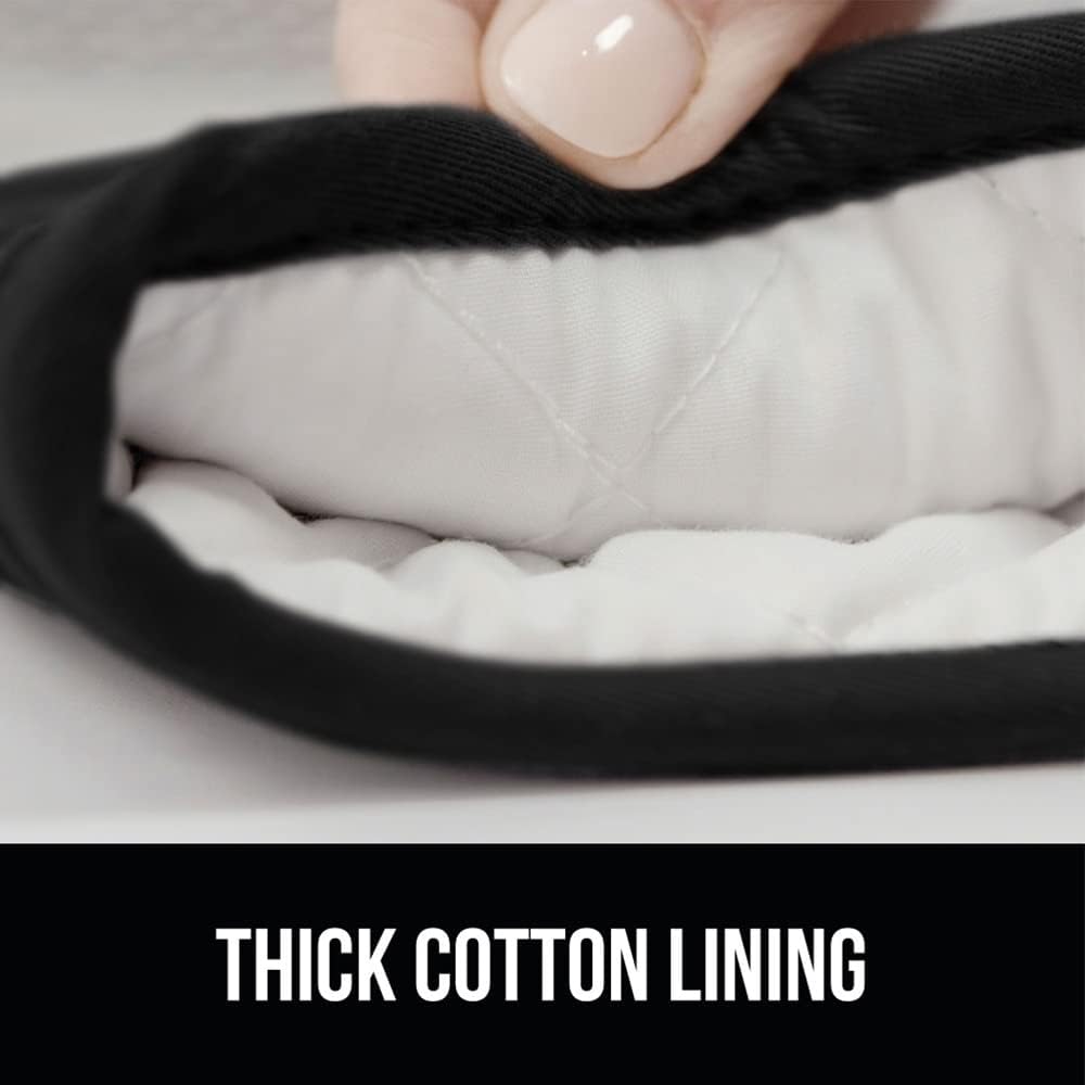 GORILLA GRIP BPA-Free Soft Silicone Oven Mitts and Pot Holders Sets of 4, Heat Resistant Waterproof Cooking Gloves, Thick Cotton Lining, Flexible Gripping for Baking Grilling, Kitchen Trivets, Black