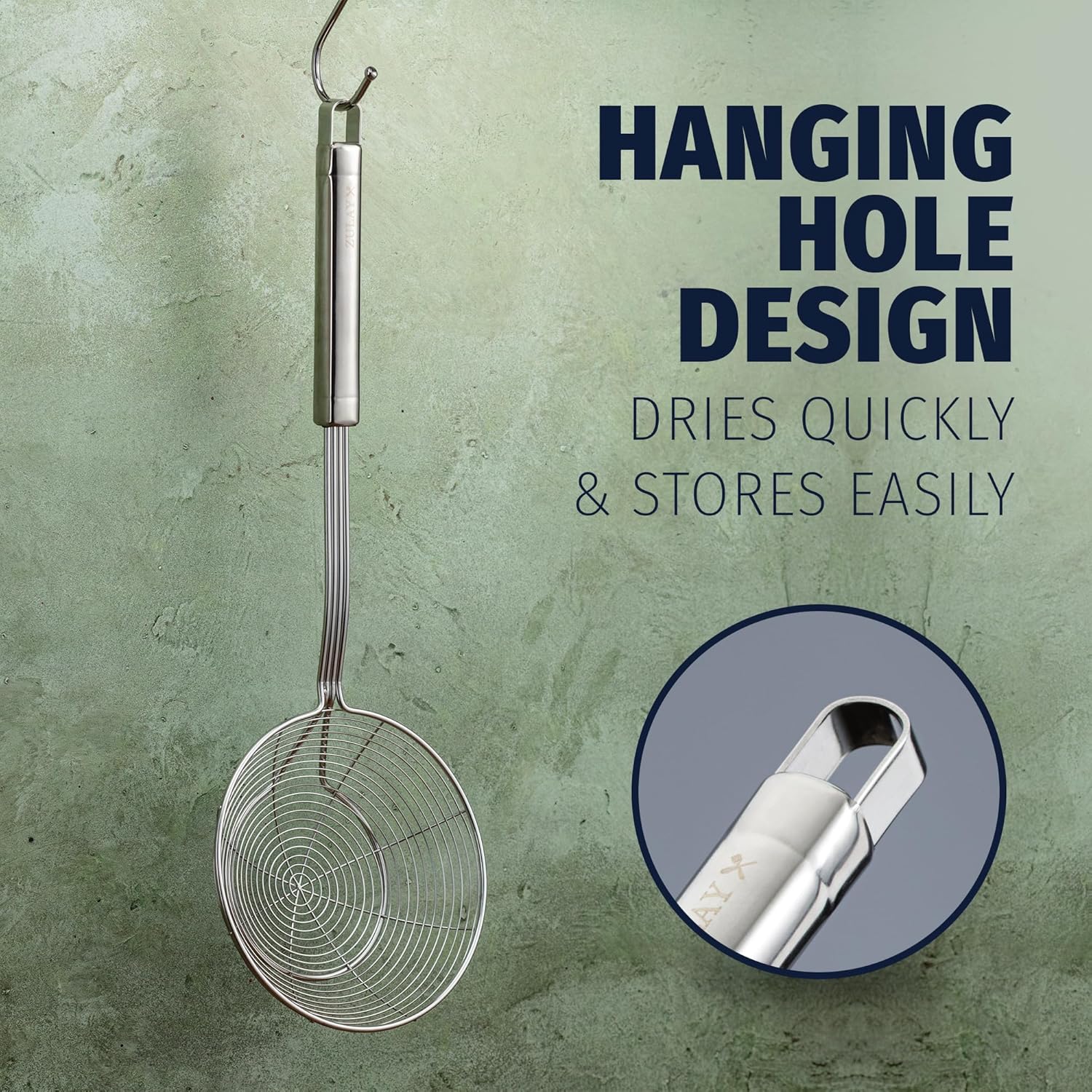 Zulay Kitchen Premium Stainless Steel Spider Skimmer 15.35” - Spider Kitchen Utensil with Premium Ergonomic Handles for Easy Use - Easy to Clean - Perfect for at Home Cooks & Chefs