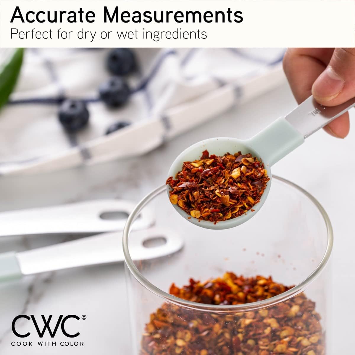COOK WITH COLOR Measuring Cups Set and Measuring Spoon Set, Stainless Steel Handles, Nesting Kitchen Measuring Set, Liquid Measuring Cup Set, 12 PC Stainless Steel, Mint