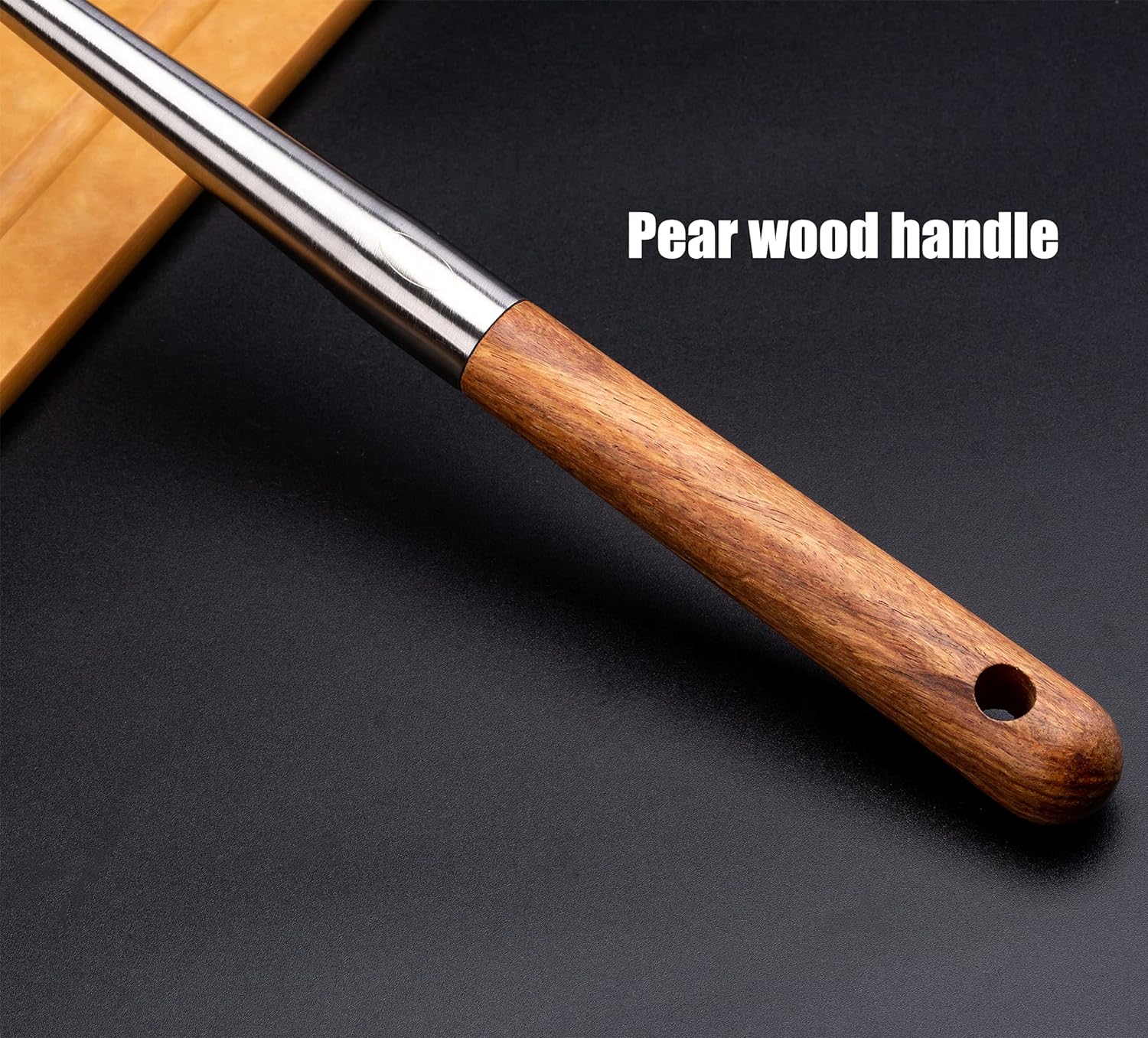 - Design of the Kitchenware Set: the wooden handle is ergonomic, the stainless steel is durable and heat-resistant,and the appearance is classic. Specially designed for cooking food, it can be easily turned and cooked to help you make delicious dishes