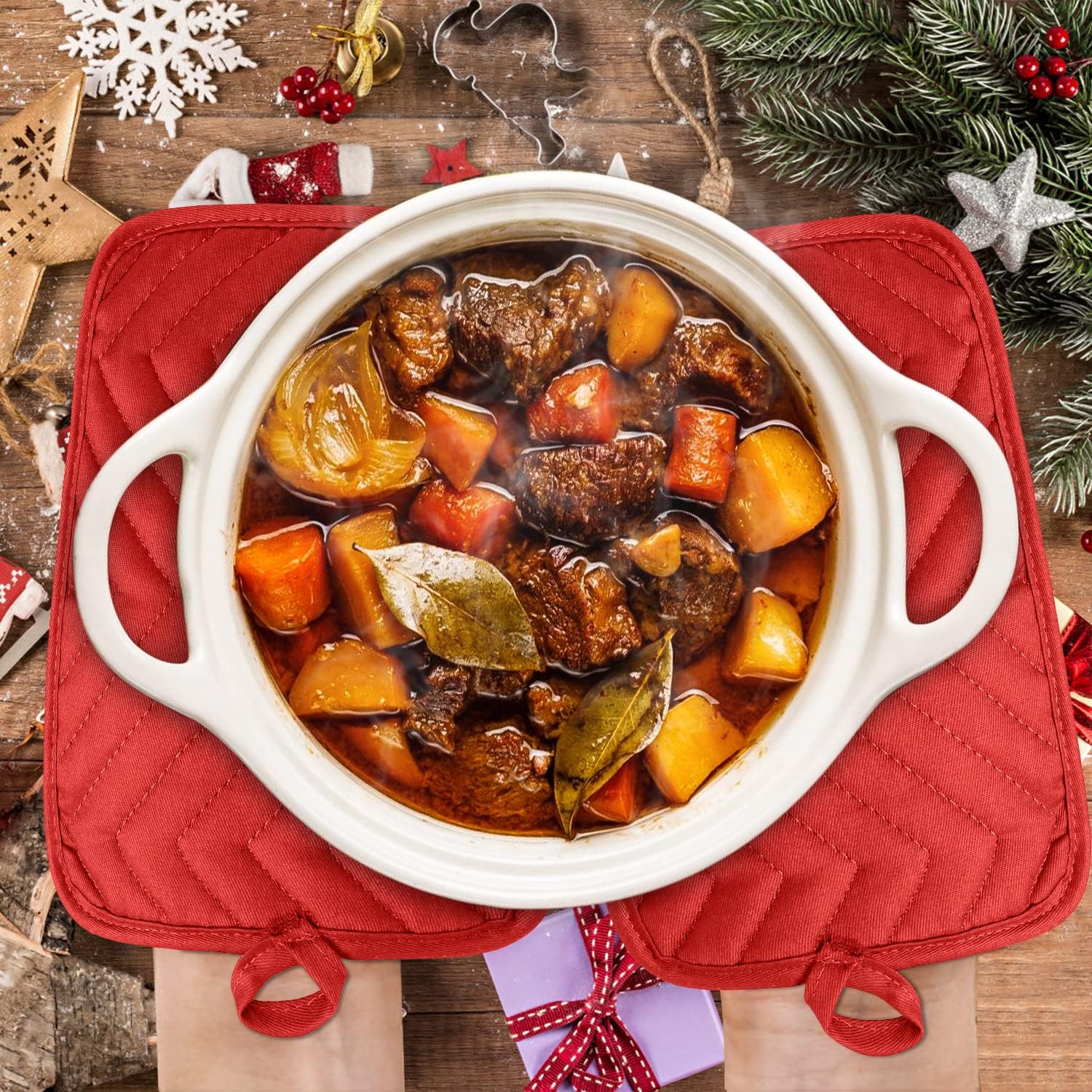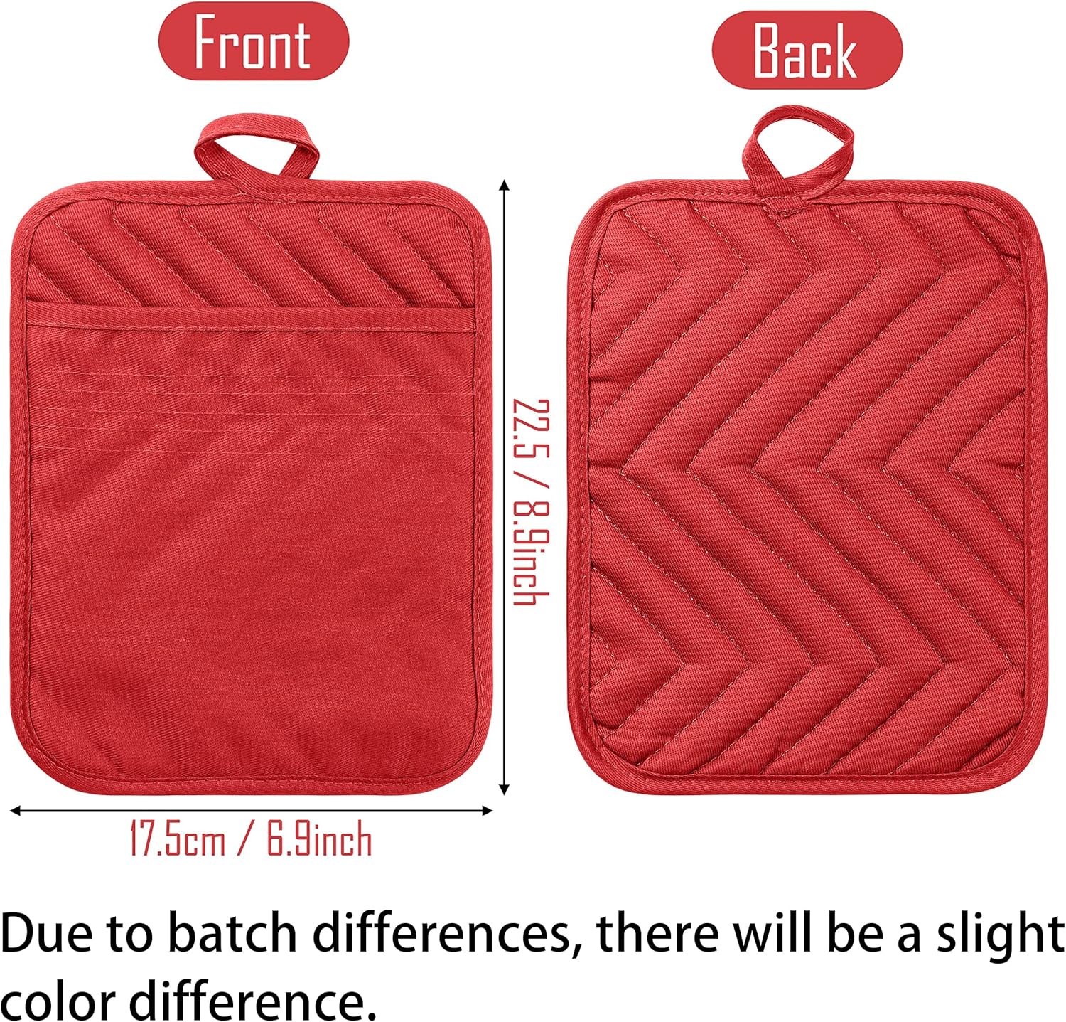 - Simple Design and Durable -- GROBRO7 hot pads made of cotton with size 6.9ββ x 8.9ββ, red minimalist stylish design with pockets, heat-resistant, machine washable, save your time and energy!